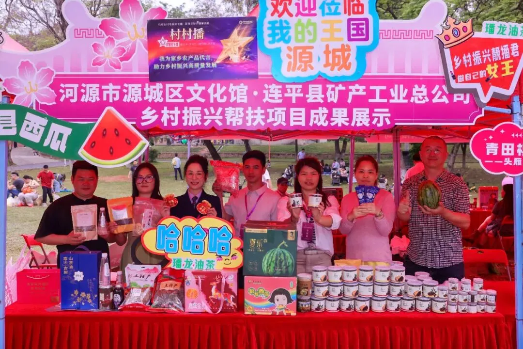 河源市作为本次活动核心参与方、签约主力和成果亮点,表现尤为亮眼。河源市连平县矿产工业总公司乡村振兴帮扶项目部负责人陈漫携河源特色文旅IP及帮扶项目成果集中参展,全面展示项目帮扶成效、产业发展成果与文旅融合实践路径。产销对接会上,陈漫冒雨登台推介,深情讲述乡村振兴文旅IP打造历程、电商助农实操经验与公益帮扶暖心故事,并代表项目团队为活动赞助100份甜蜜振兴伴手礼。