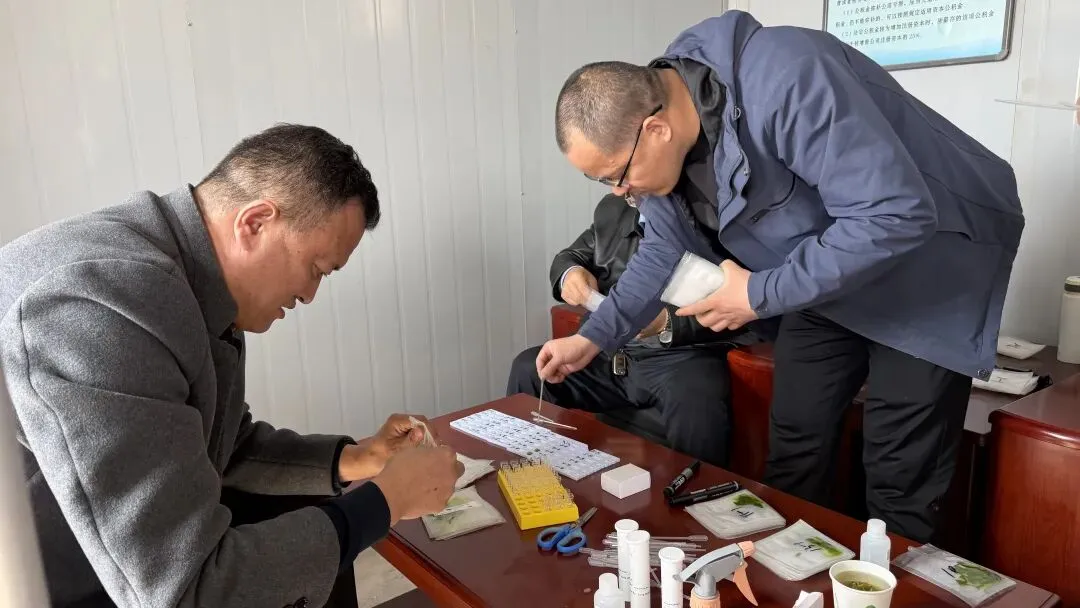 在大棚育苗基地,技术人员现场开展种苗检测,实地查看苗情长势,现场示范样本采集、快速检测等实操技能,面对面答疑解惑,让参训人员直观掌握实用方法。截至目前,已完成11家育苗基地检测,覆盖2000万余株西瓜种苗。