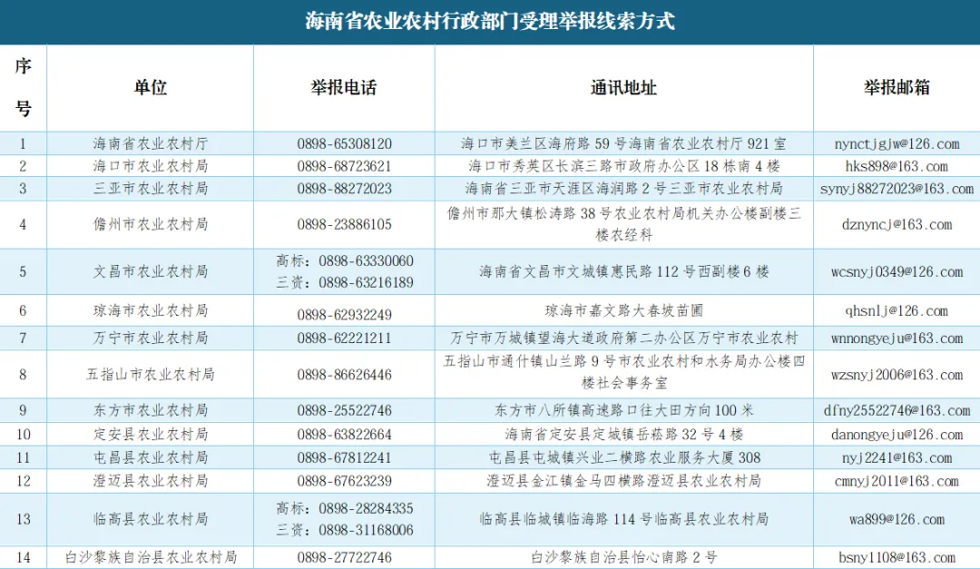 #海南公开征集高标准农田及农村集体“三资”管理问题线索近日,海南省农业农村厅面向社会公开征集高标准农田建设及农村集体“三资”管理领域问题线索,旨在深化整治群众身边不正之风和腐败问题,维护群众权益。重点为高标准农田领域的工程偷工减料、套取资金、管护缺位等,农村集体“三资”管理领域的财务混乱、违规发包、优亲厚友等违规违纪违法问题,征集至12月31日,并公布了受理部门和举报电话。(海南省农业农村厅网站)