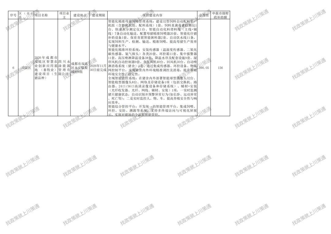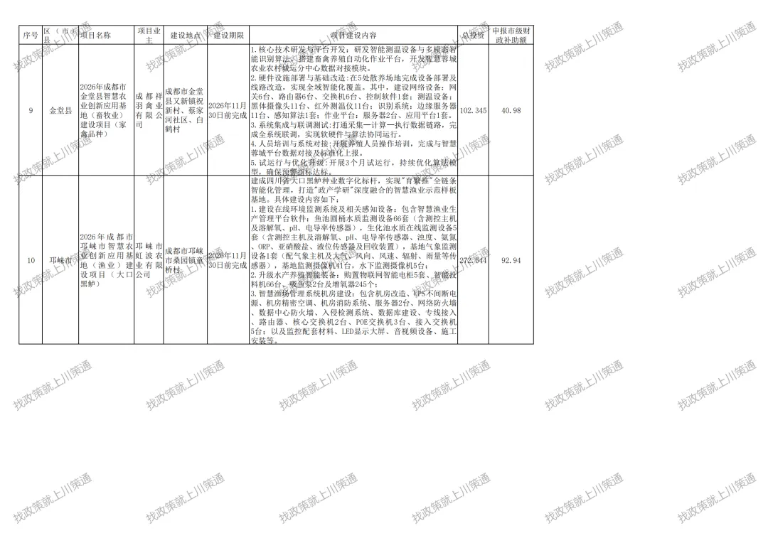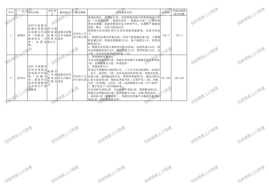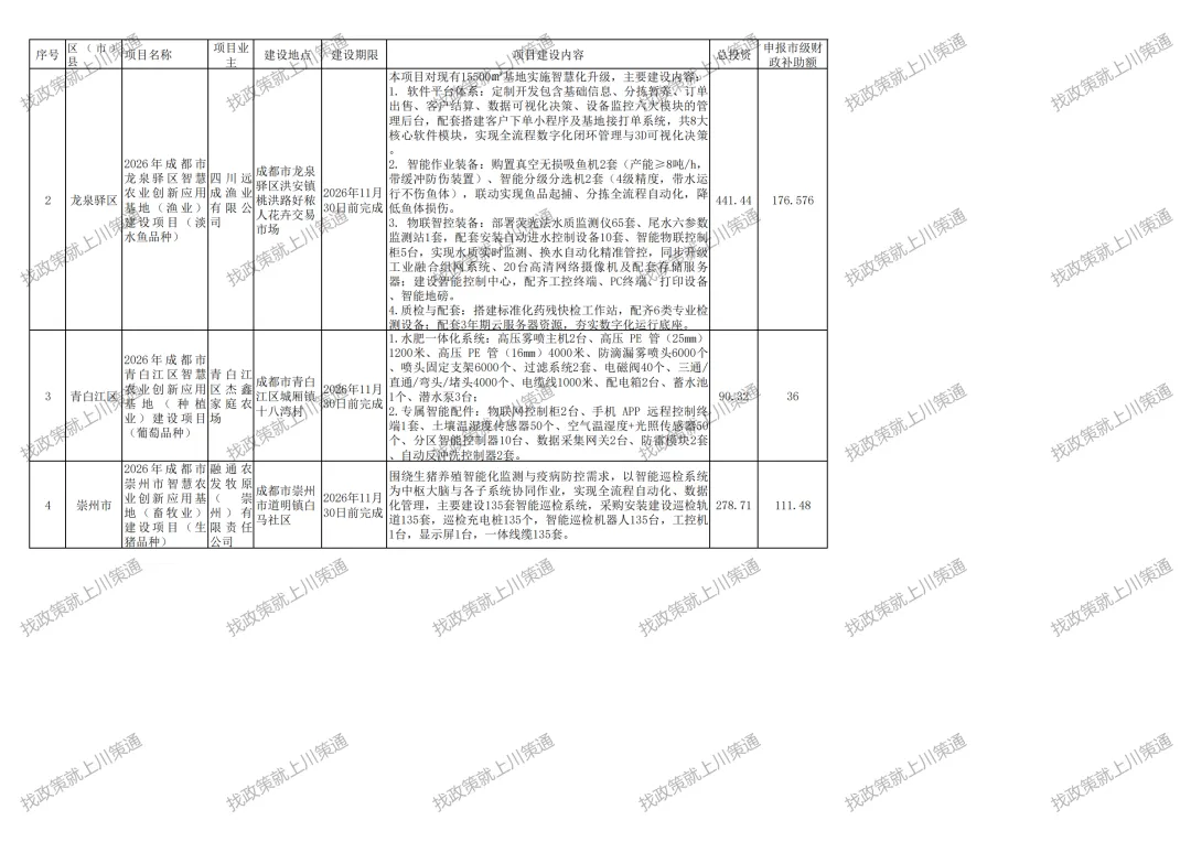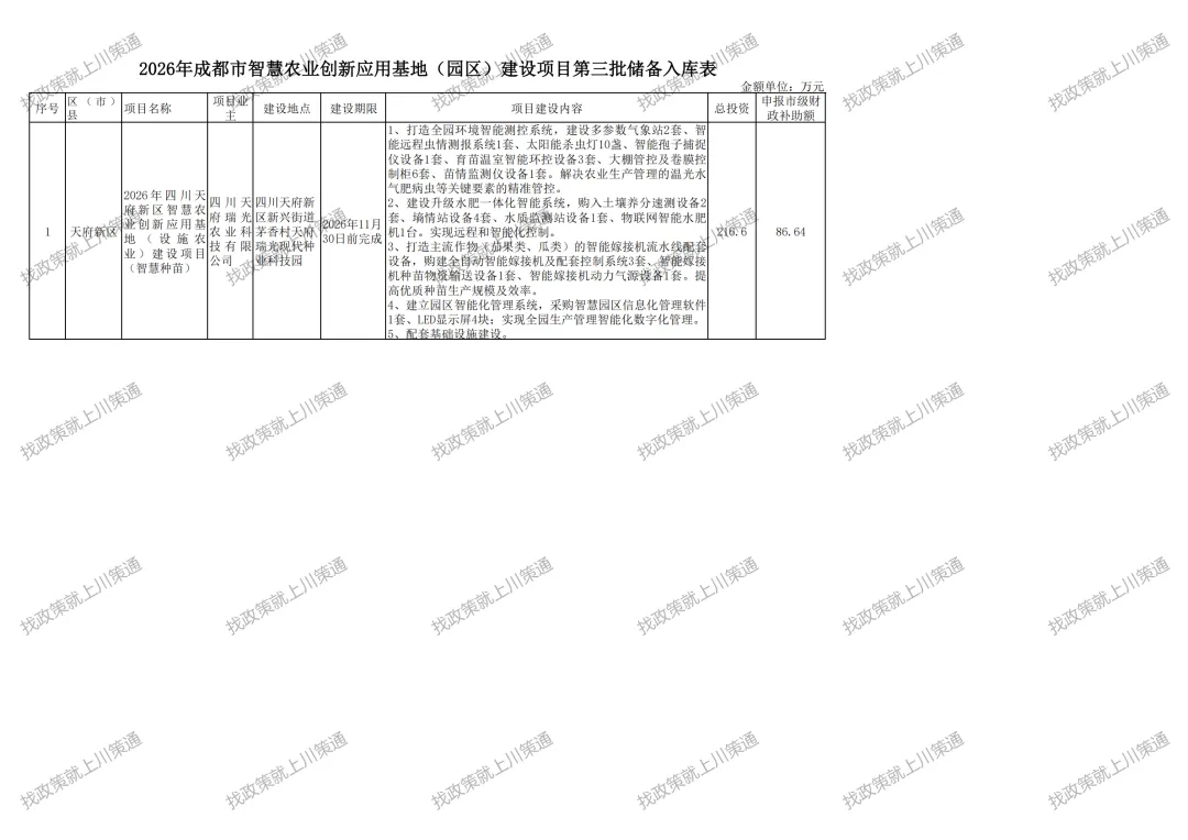 附件:2026年成都市智慧农业创新应用基地(园区)建设项目第三批备入库表