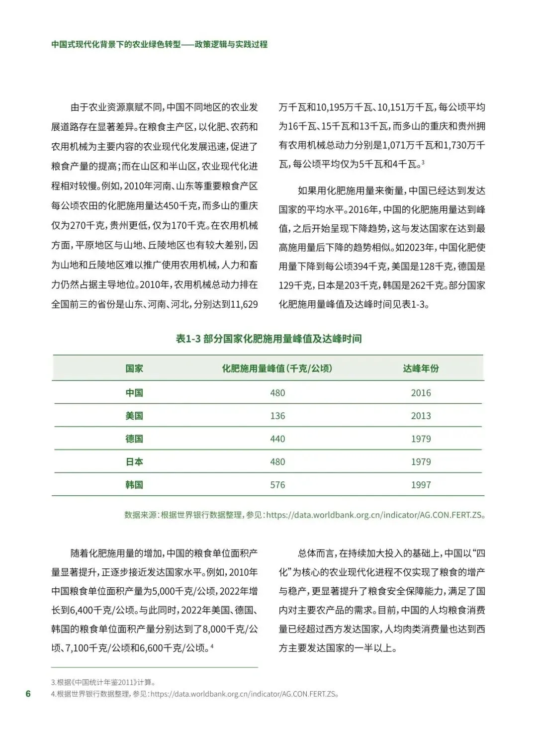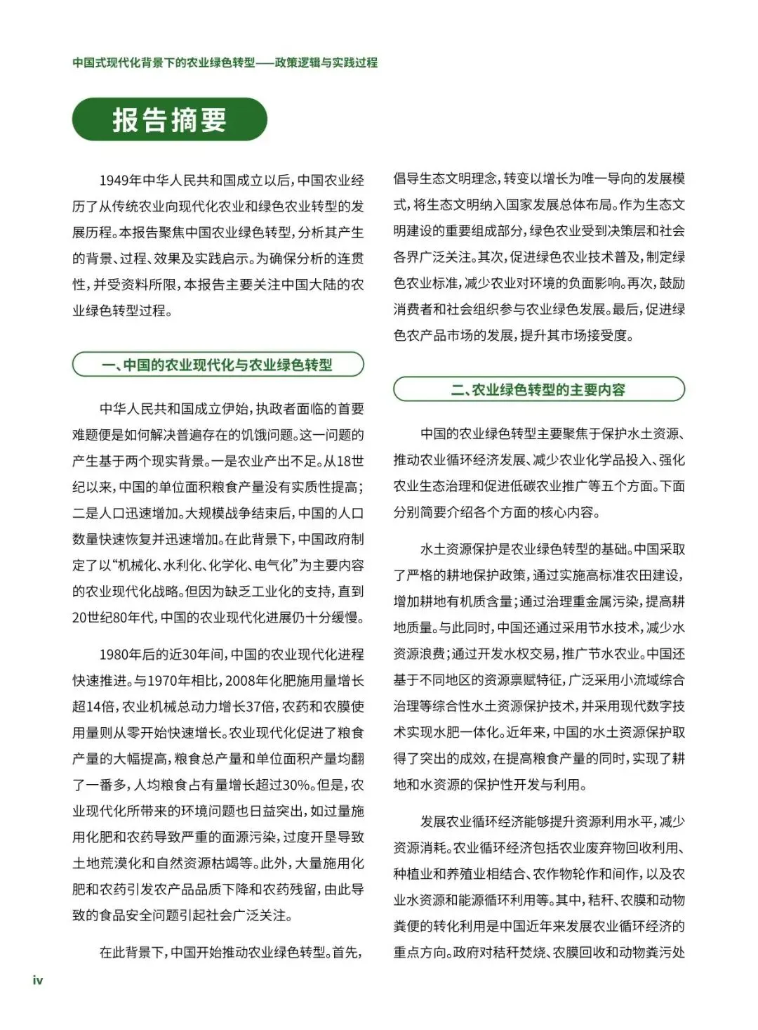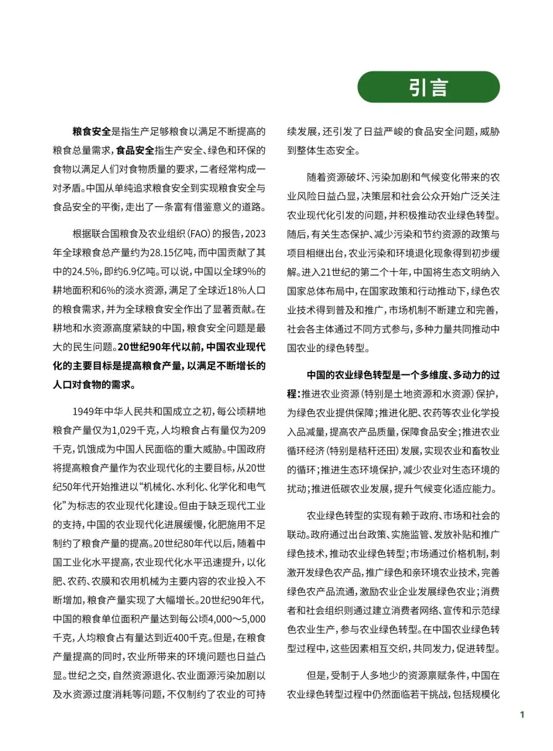 报告回顾了新中国成立以来,为解决粮食短缺问题而推行的以机械化、水利化、化学化、电气化为核心的农业现代化战略。这一战略在1980年后的三十年间快速推进,显著提高了粮食产量,但同时也带来了严峻的环境挑战。化肥农药的过量使用导致面源污染、土地退化及食品安全问题日益突出。在此背景下,推动农业绿色转型成为国家生态文明建设的重要组成部分,旨在转变发展模式,减少农业对环境的负面影响。