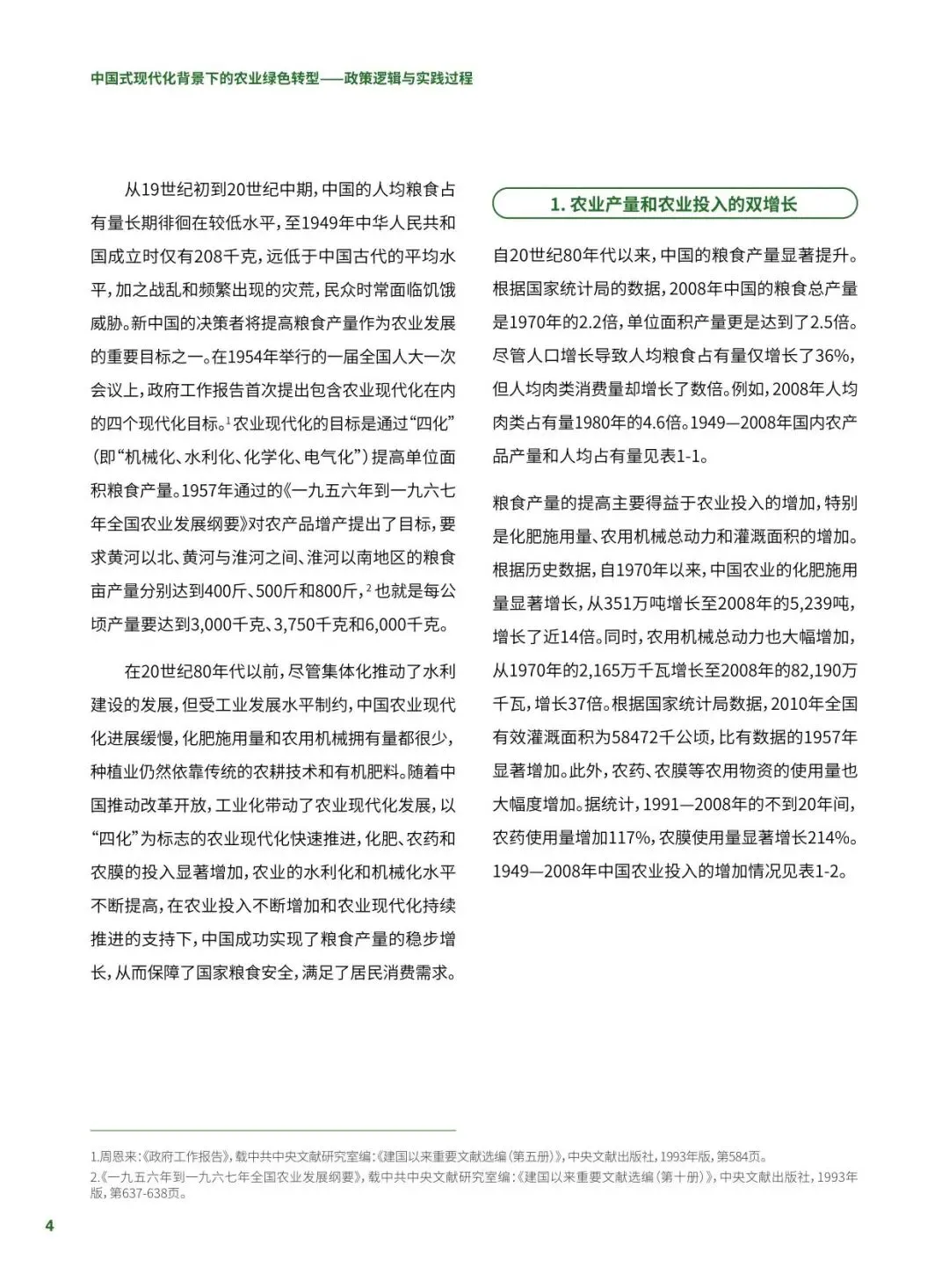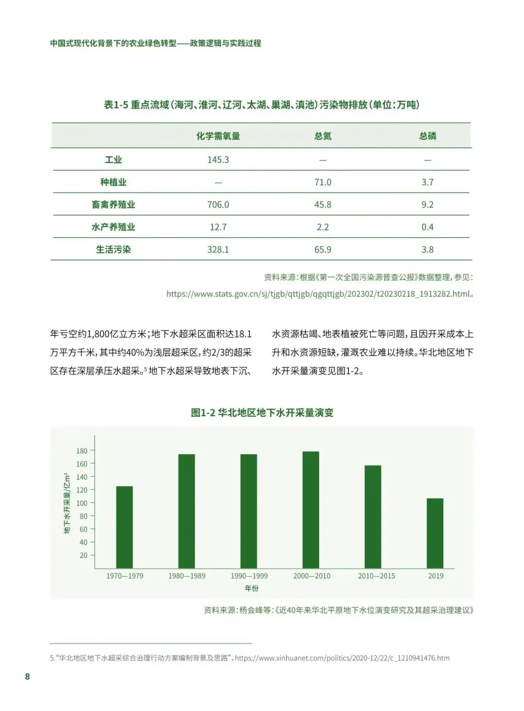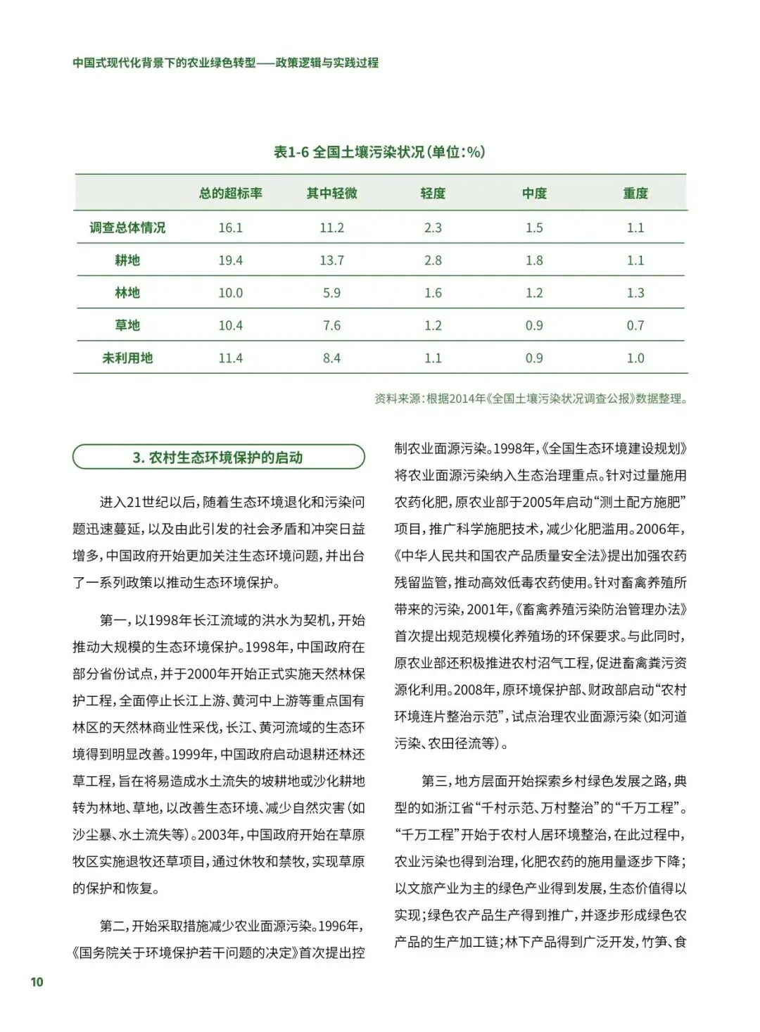 报告回顾了新中国成立以来,为解决粮食短缺问题而推行的以机械化、水利化、化学化、电气化为核心的农业现代化战略。这一战略在1980年后的三十年间快速推进,显著提高了粮食产量,但同时也带来了严峻的环境挑战。化肥农药的过量使用导致面源污染、土地退化及食品安全问题日益突出。在此背景下,推动农业绿色转型成为国家生态文明建设的重要组成部分,旨在转变发展模式,减少农业对环境的负面影响。