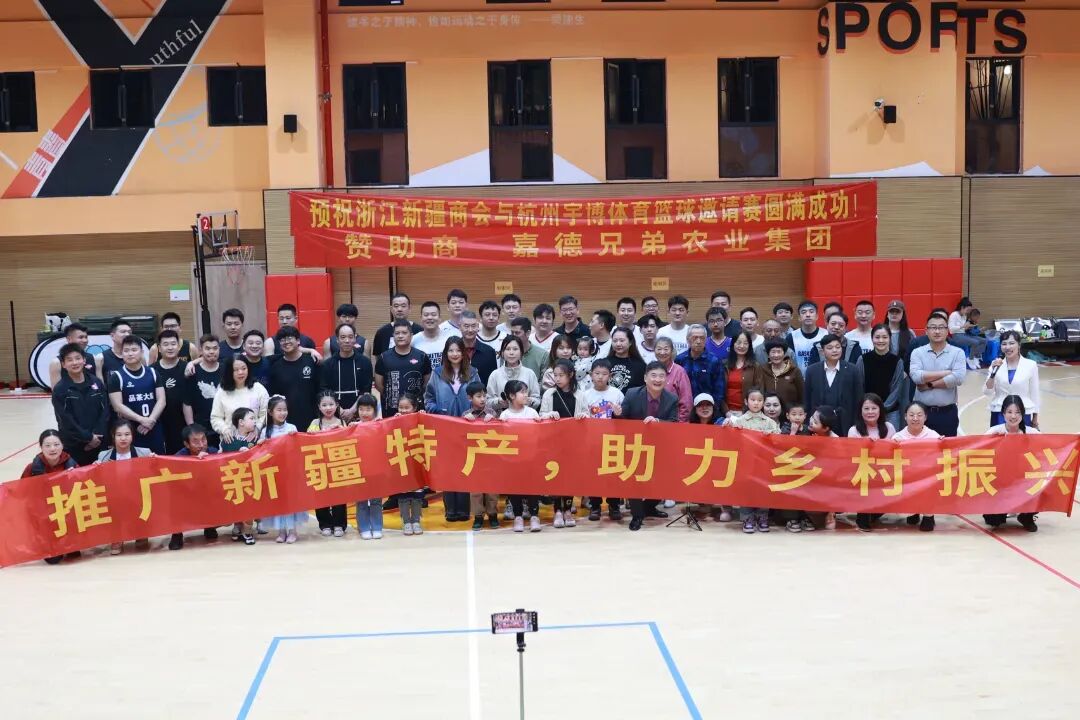 2024年3月23日,浙江省新疆商会篮球队与杭州宇博体育篮球队在杭州青春中学前进校区进行了一场篮球友谊赛。本次活动由我公司【嘉德兄弟农业集团】全力支持和赞助。此次活动由浙江省新疆商会全程组织策划。浙江省新疆商会常务副会长李军、浙江省新疆商会党支部书记付林聪、浙江省新疆商会副秘书长、女工委员会主任周金莲及新疆籍导演吴全伟等共九十三人参加活动。篮球比赛前奏,双方球员秉承着友谊第一,比赛第二的赛场精神,相互握手致意,并展现出友好的比赛氛围,随后全体嘉宾以及队员们奏唱国歌。本次比赛率先由我公司——浙江嘉德兄弟农业乡村发展集团孙欢女士代表致辞,宣布本次商会篮球赛正式开始。同时,孙欢女士也对本公司进行了隆重的介绍。随着裁判一声哨声,比赛正式拉开帷幕,紧张激烈的篮球比赛就此开始!与此同时,双方队员以饱满的精神迅速地进入状态,比赛过程中,双方队员你追我赶,现场异常激烈。观众们也为之沸腾,加油声、欢呼声此起彼伏,将比赛推向了高潮。这场友谊赛不仅仅是一场比赛竞技,更加体现了民族团结和文化交流的结晶,完美的展示了新疆和浙江两地人民团结一心、共同发展的良好形象。