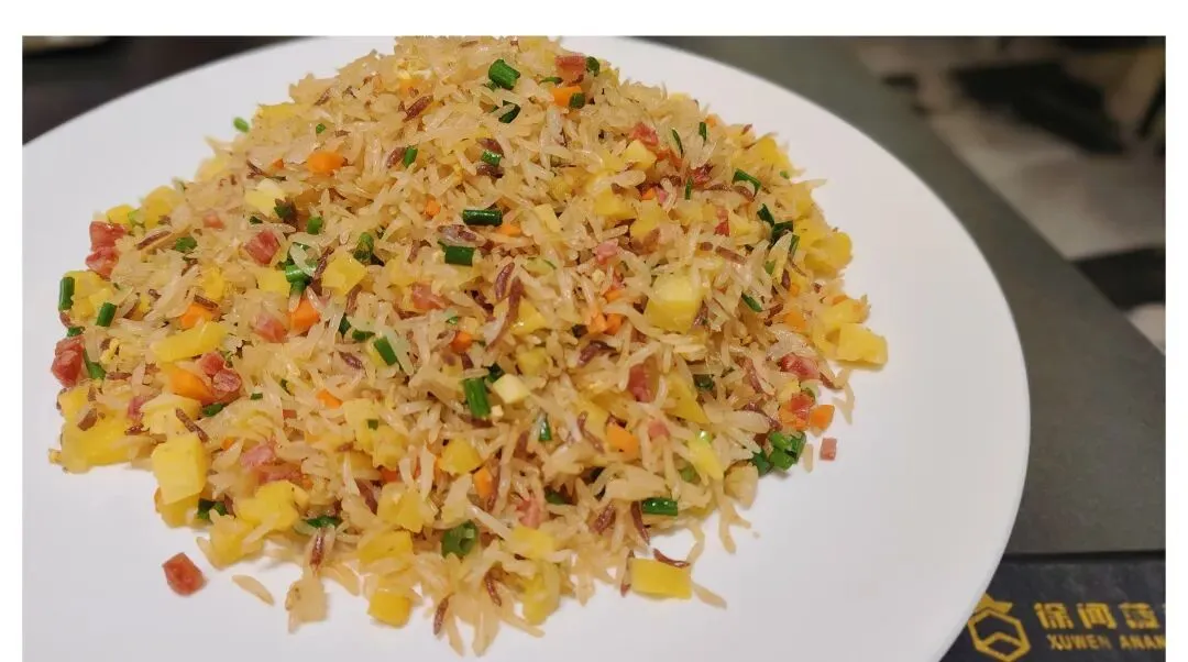 来都来了,当地特色必须得尝。在徐闻菠萝酒店,点了份菠萝炒饭,米饭一粒一粒的,虽然没有东北米的香气,但裹着菠萝的酸甜汁,油亮亮的,每口都是果香,每口都有甜甜的菠萝丁,软软糯糯的还带点脆。