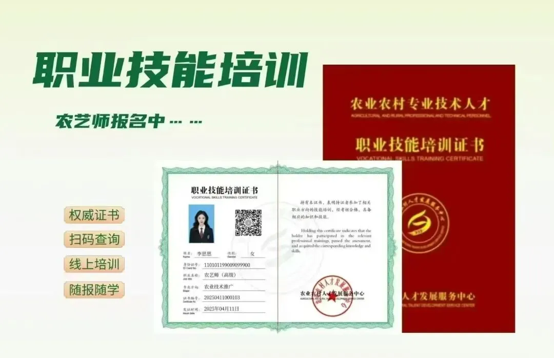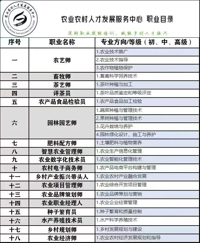 农业农村人才发展服务中心价格调整农艺师、畜牧师、园艺师、茶艺师、农产品食品检验员、肥料配方师、乡村规划师、乡村产业振兴带头人、农村电子商务师、智慧农业管理师、种子繁育员农药经营许可五十六学时培训线上培训+线上考核欢迎报名/合作招生!