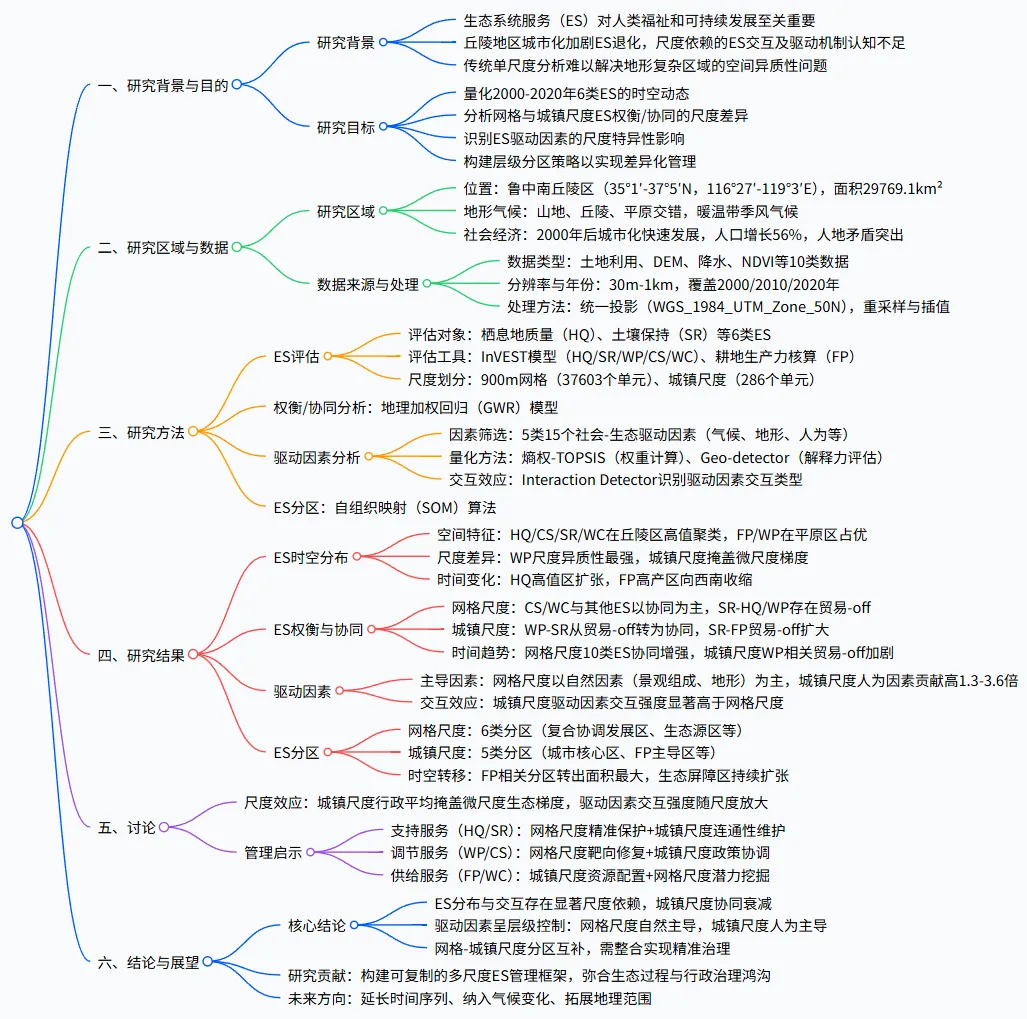 本研究旨在通过多尺度分析框架,系统探究快速城市化丘陵区的 ES 动态交互特征,具体实现四大核心目标