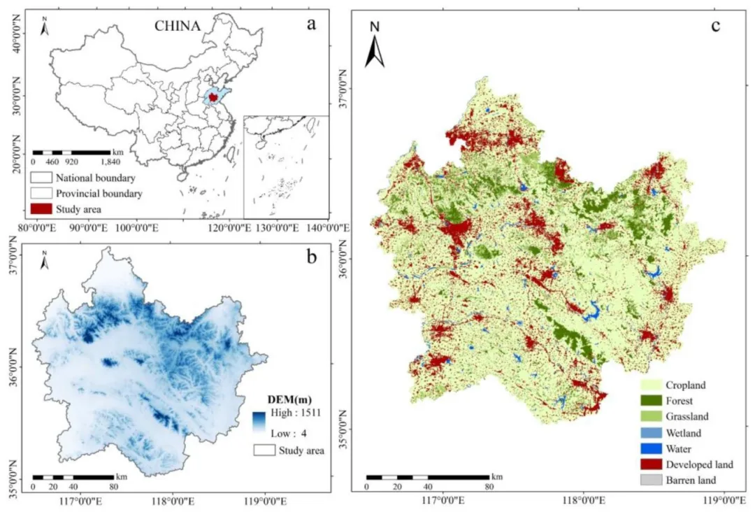 生态系统服务(ES)作为人类福祉与可持续发展的核心组成,在维护快速城市化山地生态系统的生态安全和社会经济韧性中发挥关键作用。然而,这类脆弱景观正遭受日益加剧的人为压力导致的ES退化,而当前对尺度依赖的ES交互关系及其驱动机制仍存在关键认知缺口,阻碍了基于证据的生态系统治理。尽管近年来ES研究在指标框架、空间建模等方面取得进展,但在空间尺度效应上仍存在显著方法学不确定性,不同分辨率下的研究结果不一致。丘陵地区人为驱动的土地利用转型引发了复杂的ES权衡,农业集约化在提升供给服务的同时破坏调节服务,而传统全局相关分析方法难以捕捉地形复杂区域的尺度依赖驱动-响应关系。鲁中南丘陵区作为黄河下游流域生物多样性廊道和水文安全的关键生态源区,受地形约束与城市化扩张的双重压力,生态保护与发展矛盾突出,亟需深入理解ES交互及其驱动因素的空间尺度变异,为制定适配性管理策略提供科学支撑。