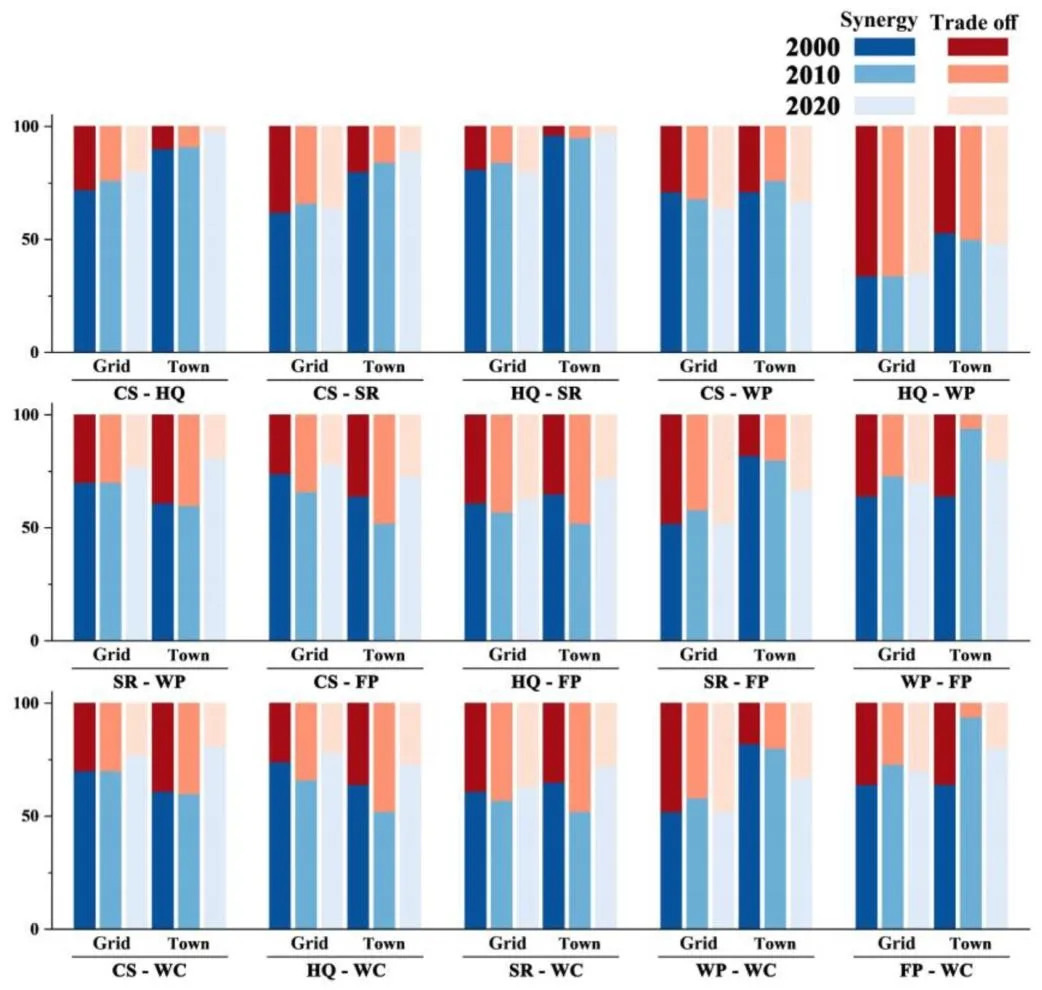 (2)分析网格与城镇尺度下ES对之间权衡/协同关系的尺度依赖模式;