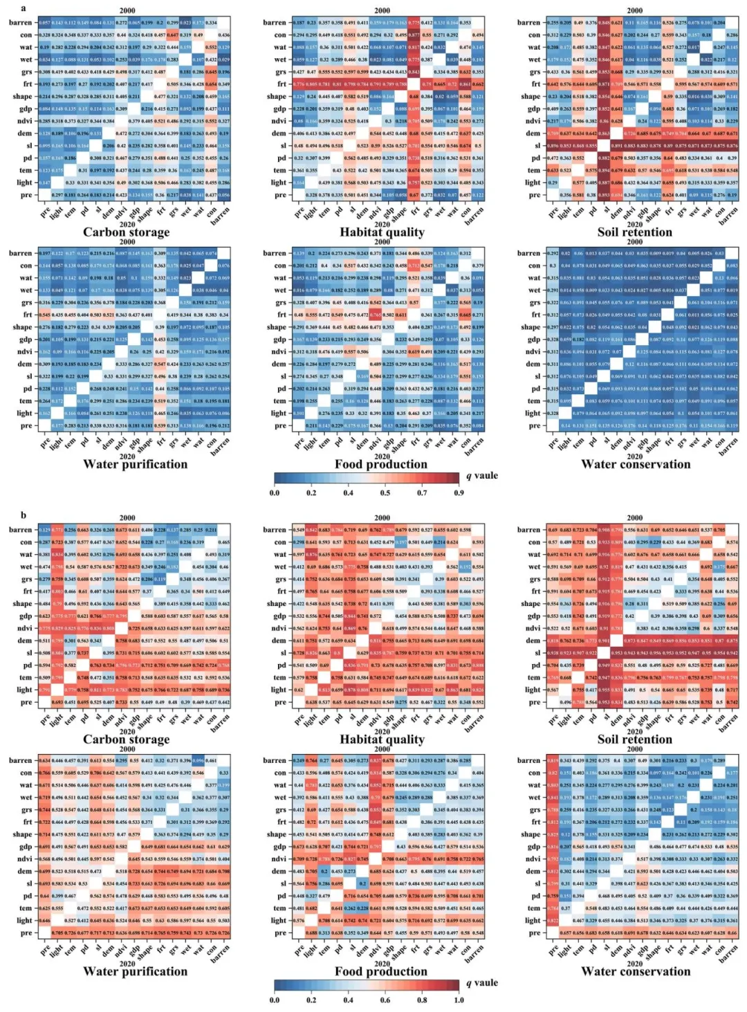 在此基础上,利用地理加权回归系统地量化了网格尺度和城镇尺度上ES对之间权衡/协同效应的时空差异。 此外,我们使用地理探测器模型和自组织地图算法来探索ES决定因素和分区的尺度依赖性变化。