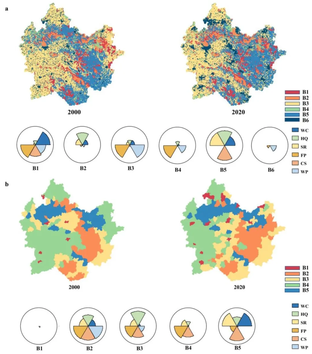 结果表明,HQ、CS、SR和WC具有相似的分布模式,主要以协同作用为特征,而FP和WP则与其他ES表现出权衡关系。 随着规模从电网向城镇过渡,规模依赖协同效应。在栅格尺度上,自然驱动因素占主导地位,而城镇尺度上的人为指标贡献是栅格尺度上的1.3~3.6倍。多尺度区划的差异主要体现在网格尺度提供了更精细的空间分辨率,可以识别局部生态功能,而城镇尺度则强调更广泛的区域一体化和发展战略协调。引入基于网格尺度的分区来补充城镇规模,使丘陵地区的独特特征得到更好的突出。通过弥合过程层面的理解和行政治理之间的差距,这项工作为面临类似生态发展紧张局势的全球过渡带实现可持续发展目标建立了一个可复制的模型。