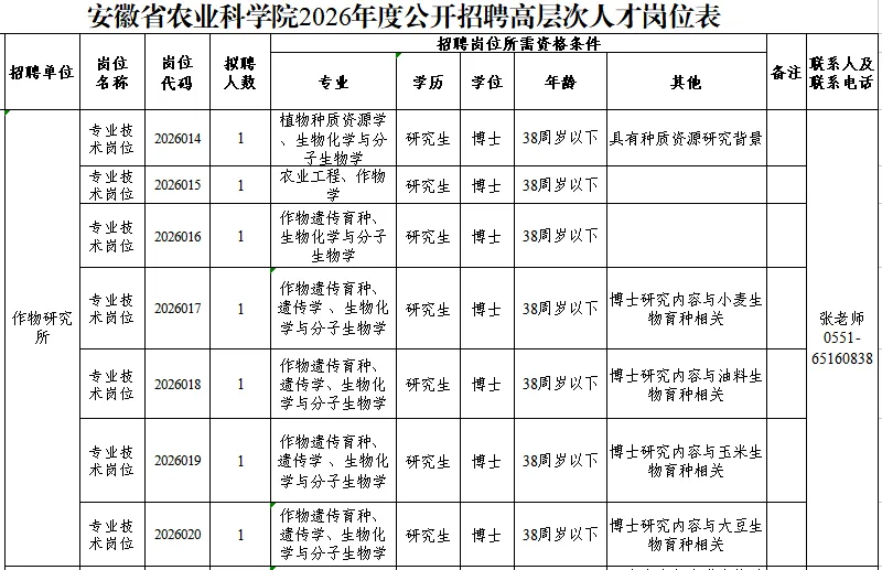 安徽省农业科学院作物研究所是安徽省政府直属的公益一类事业单位,主要从事小麦、大豆、油菜、玉米等作物的遗传育种、耕作栽培和种质资源利用等应用科学研究。因工作需要,招聘博士毕业生7名,现将有关招聘事项公告如下:
