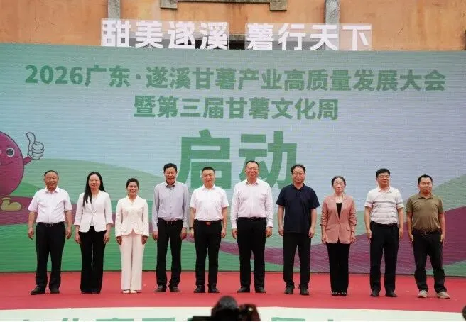 3 月 27 日,2026 广东・遂溪甘薯产业高质量发展大会暨第三届甘薯文化周在遂溪孔子文化城仁济门广场盛大开幕。本次盛会以 “甜美遂溪薯行天下” 为主题,汇聚全国薯业专家、政企代表、采购商团共话产业发展,佳淳农业作为遂溪火山红薯标杆企业全程亮相,成为现场焦点。