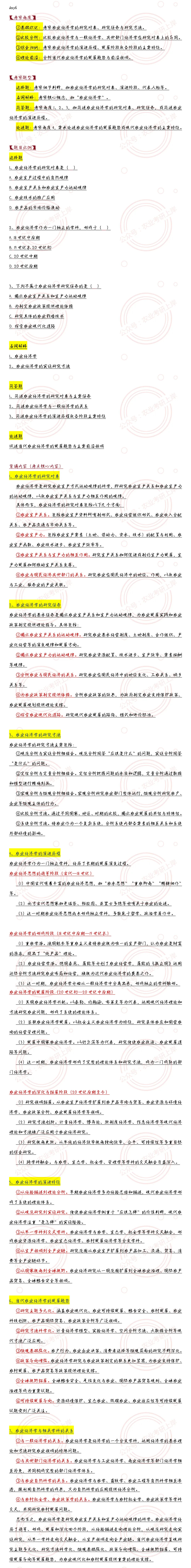 >【背书打卡Day6·第一章考点-6】农业经济学的研究对象与演进特征