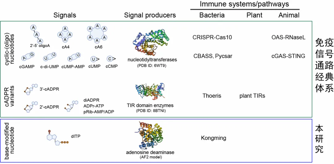 “孔明系统”并非个例,研究显示它广泛存在于各类细菌中,且具有高度模块化的结构特征,核心的KomB-KomC复合体保持高度保守,而KomA则具有可变性。这暗示着自然界中可能还隐藏着更多未知的核苷酸信号系统。