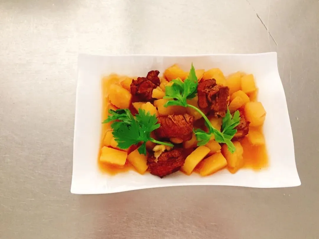 | 午餐 | 排骨炖土豆 (牛肉炖土豆) 炒合菜 鲜蔬海苔拌饭 燕麦粥 |
