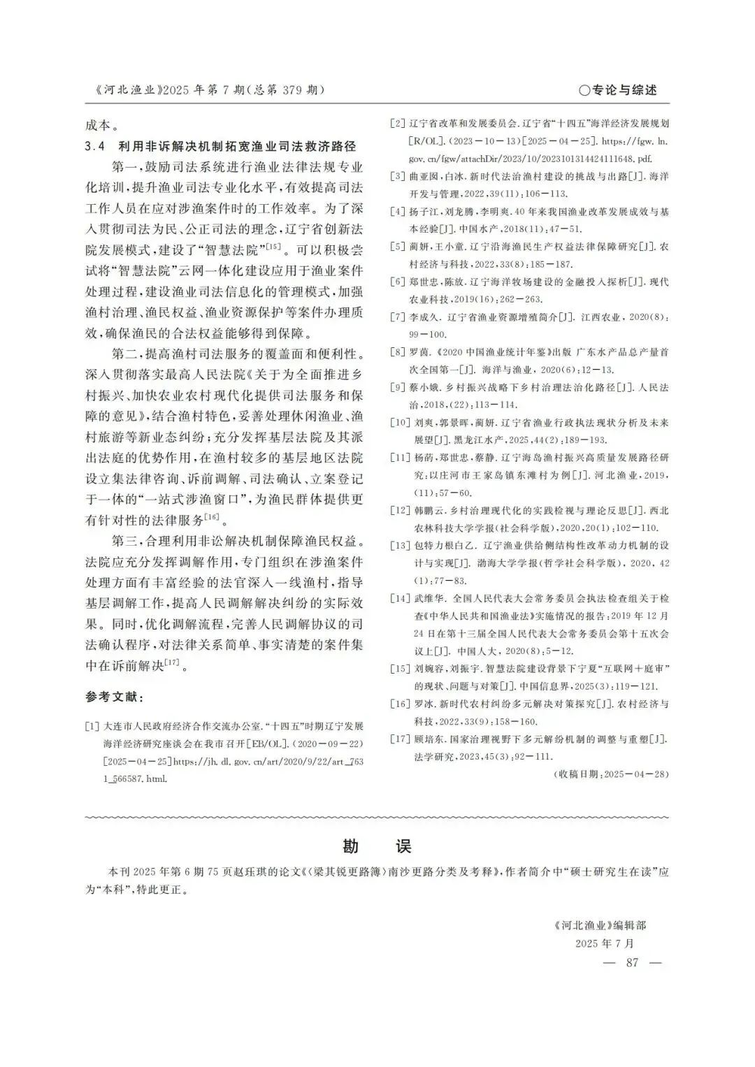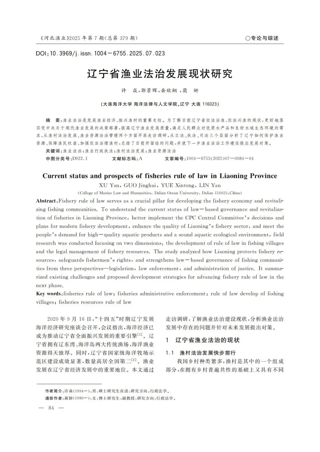 本文引自:许焱,郭景晖,岳欣桐,等.辽宁省渔业法治发展现状研究[J].河北渔业,2025,7:84-87.