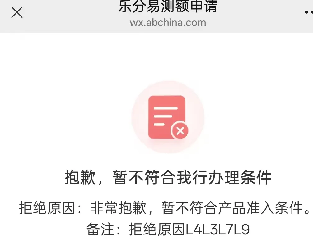 最近农行乐分易申请热度居高不下,可被拒的人也越来越多:风筛扫码直接拒、出额度面签被拒、初筛跳出各类L开头错误码,甚至一人触发多个报错,不少人全程摸不着头脑。究其原因,大多是大家盲目跟风申请,没有找准定位;只要精准匹配客群、提前做好准备,这款产品的审批通过率其实十分可观。