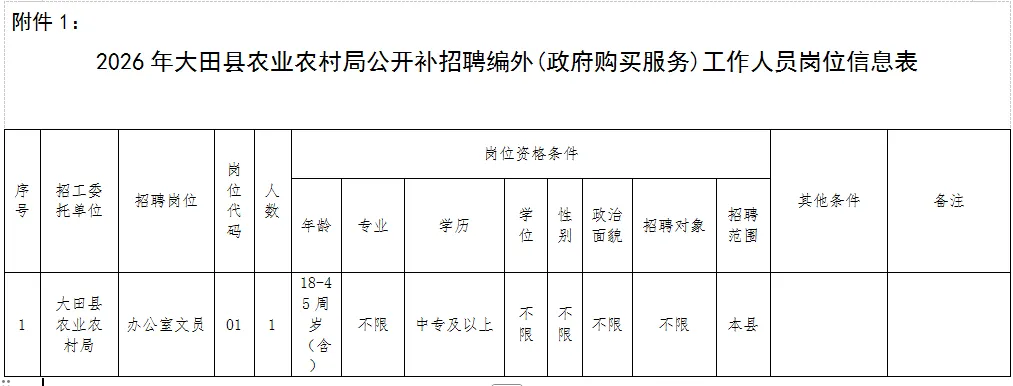 >大田县农业农村局【招聘】办公室文员