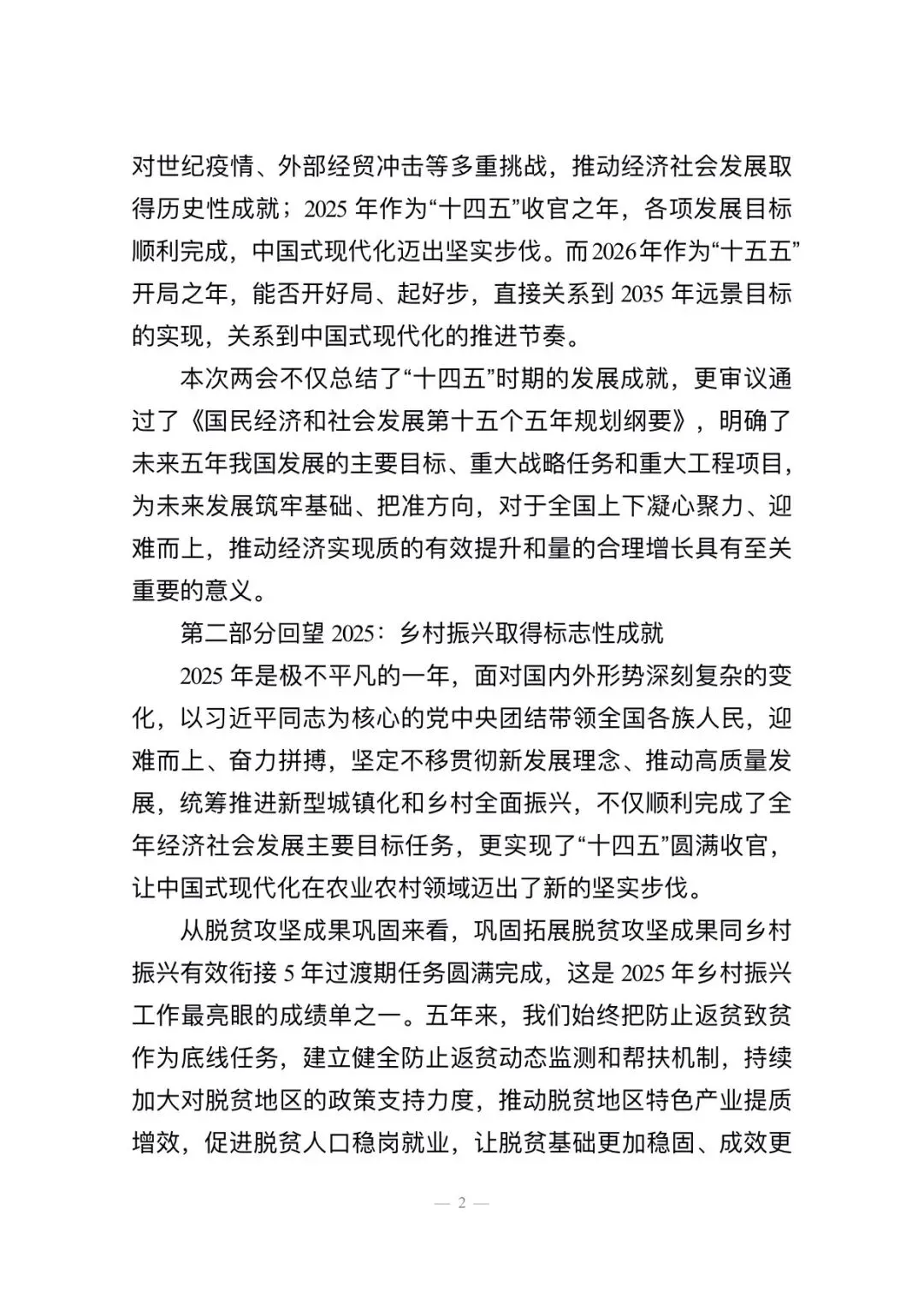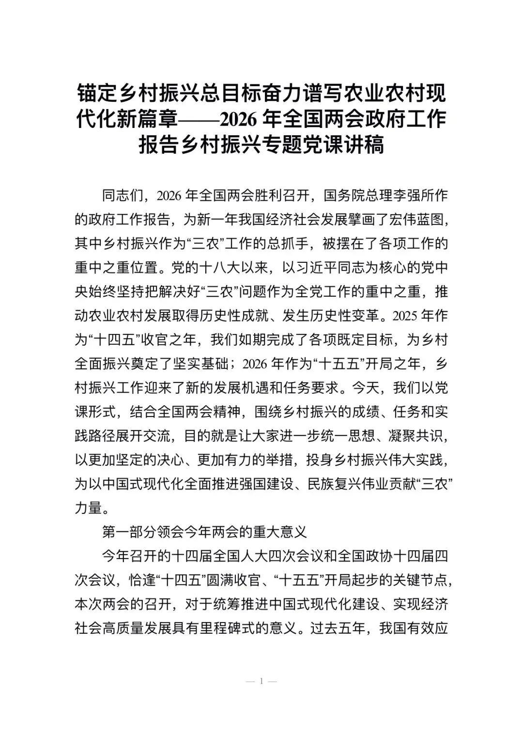 锚定乡村振兴总目标奋力谱写农业农村现代化新篇章——2026年全国两会政府工作报告乡村振兴专题党课讲稿