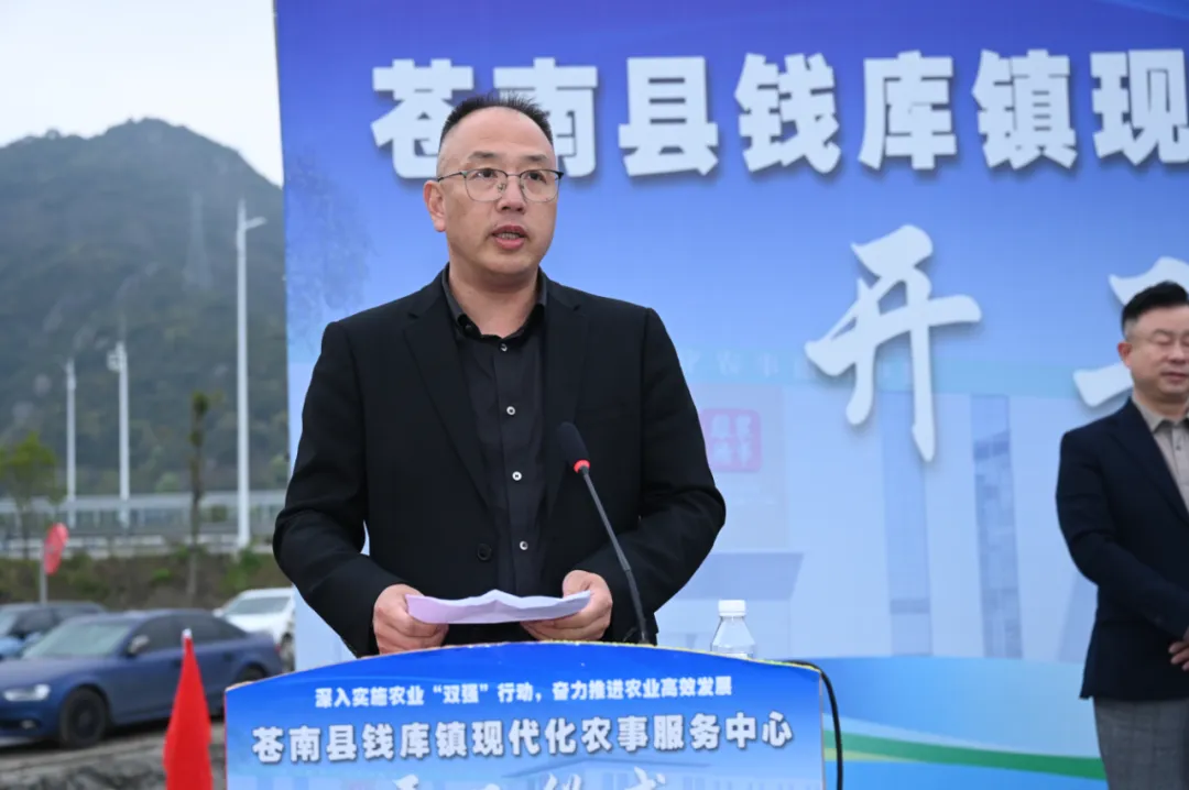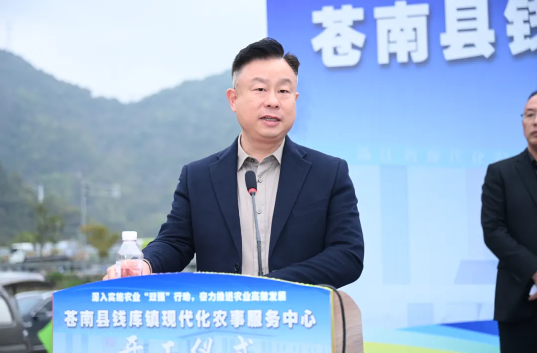 县农业农村局党组书记、局长林正县在致辞中对项目开工表示热烈祝贺。他充分肯定钱库镇作为苍南重要粮食主产区在推动农业发展上的积极作为,认为该项目落地正当其时、意义深远,将有效补齐苍南农业社会化服务短板,为构建“5公里农事服务圈”提供关键支撑。他希望,一是建设单位要严把标准,打造标杆工程,确保今年11月如期竣工并具备农事服务条件;二是项目建成后要聚焦服务,做强综合保障,特别是充分发挥低空无人机等技术优势,打造“一站式”农业社会化服务综合体;三是各方要凝聚合力,钱库镇履行好属地责任,县农业农村局将做好政策指导、技术支持等服务,共同推动项目早建成、早投用、早见效。