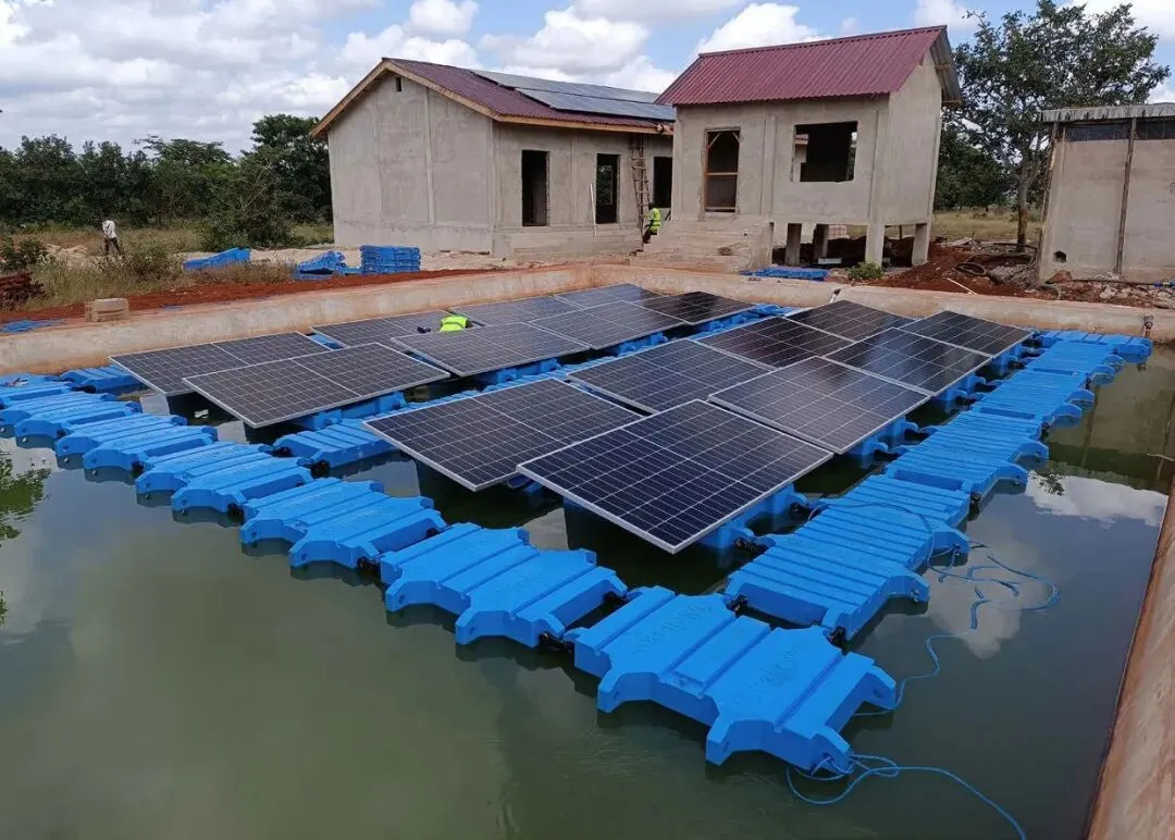 图1:坦桑尼亚莫罗戈罗可持续农业Living Lab的一部分。家禽舍旁边的鱼塘。电力由普通光伏板和浮动太阳能板提供。