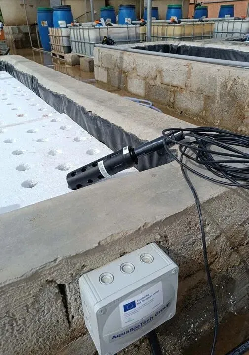 所选的DO探头与控制单元来自同一制造商,因其在非洲和亚洲其他项目中表现出的可靠性以及一年书面质保而被选用。探头的配置和数量会根据每个农业系统的具体设计而有所不同。DO和氨离子探头通过长电缆安装在Living Lab 1的鱼池中,使一个探头可以监测多个鱼池,从而降低成本和人工。不过,所有由同一DO或氨离子探头监测的鱼池都共用同一条供水管道,以维持生物安全。电缆的另一端连接到接线盒,再通过专用电缆连接到机柜。同样,在Living Lab 2中,共用同一供水管道的鱼池也共用带长电缆的DO探头。但在这种情况下,氨离子探头被安装在用于蔬菜种植的水池中。一个氨离子探头可以测量多个水培池,但需遵循相同的生物安全原则:共用同一供水管道的水池也共用同一个氨离子探头。