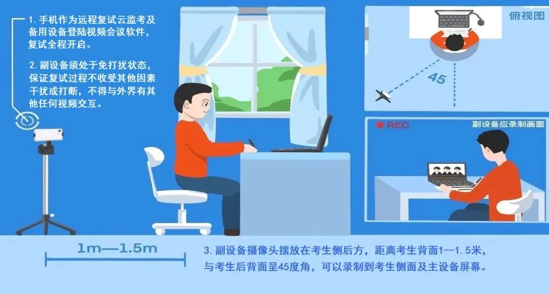 (六)按要求摆放一机位复试电脑和二机位监考手机。