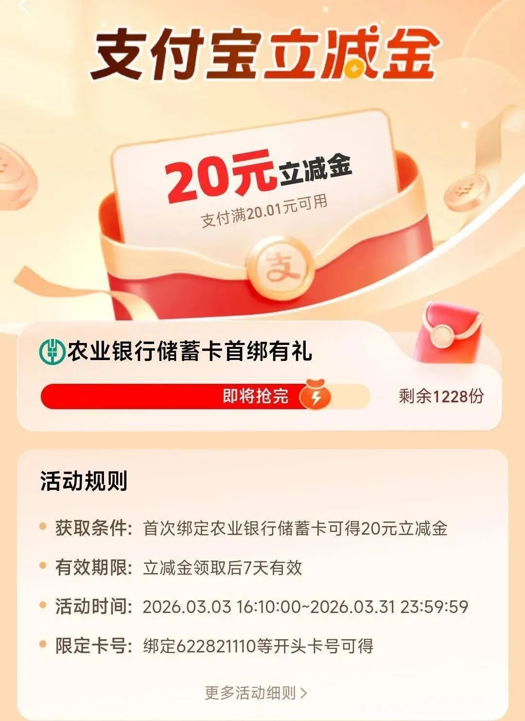 地址选湖南株洲荷塘区,然后去zfb绑这张卡秒到20元zfb🧧