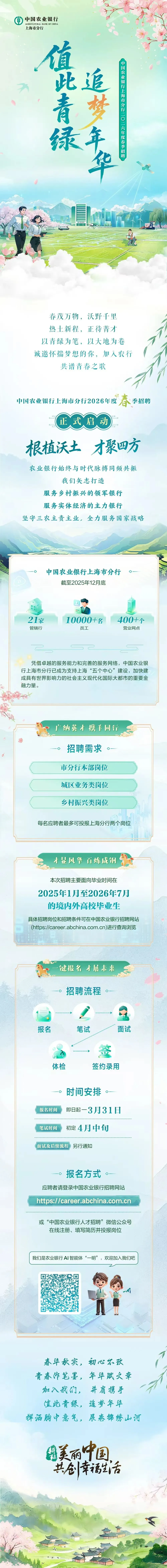 >【校园招聘】中国农业银行上海市分行2026年度春季招聘