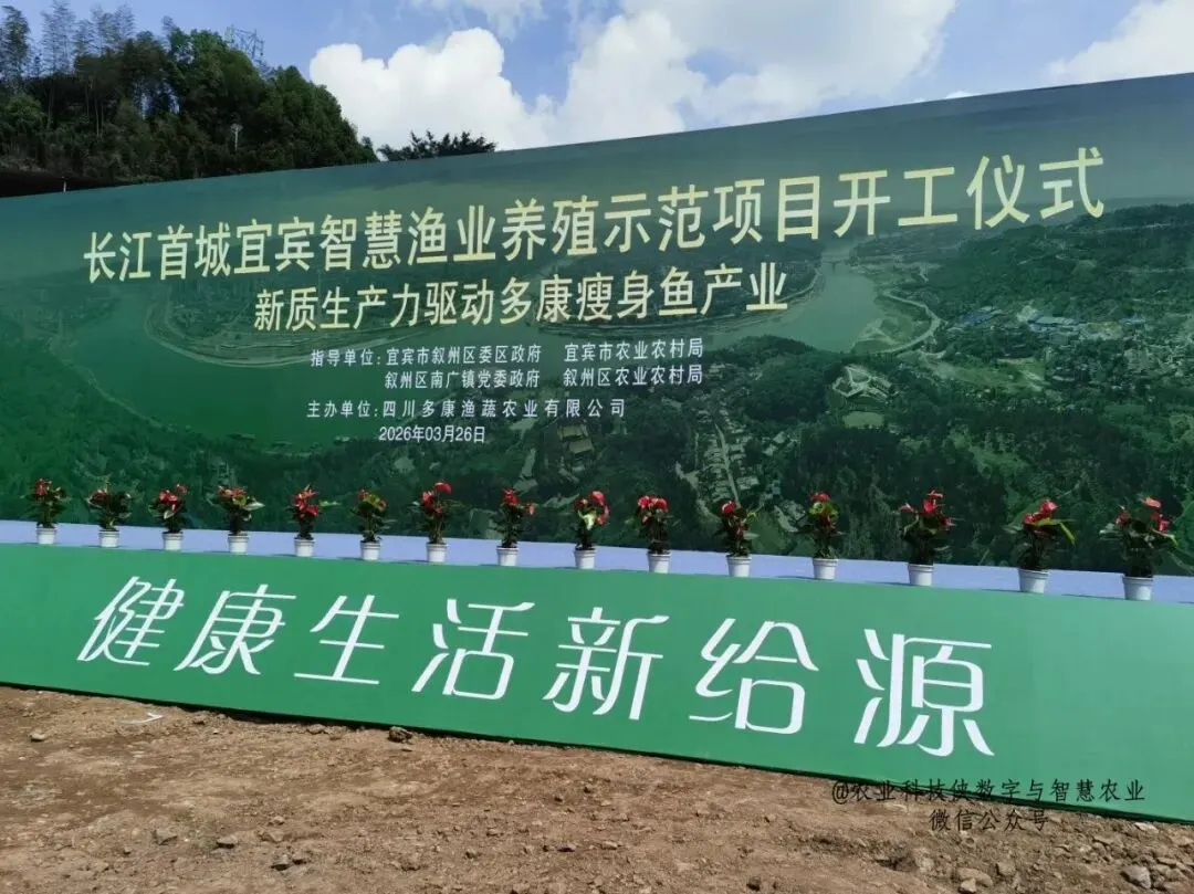 3月26日,长江首城宜宾智慧渔业养殖示范项目在四川省宜宾市叙州区南广镇互相村开工。该项目总投资1.72亿元,建成后将填补西南地区高品质特色水产规模化、标准化、全年化供应的空白,成为当地发展智慧设施渔业、推动水产产业绿色转型的重要抓手。