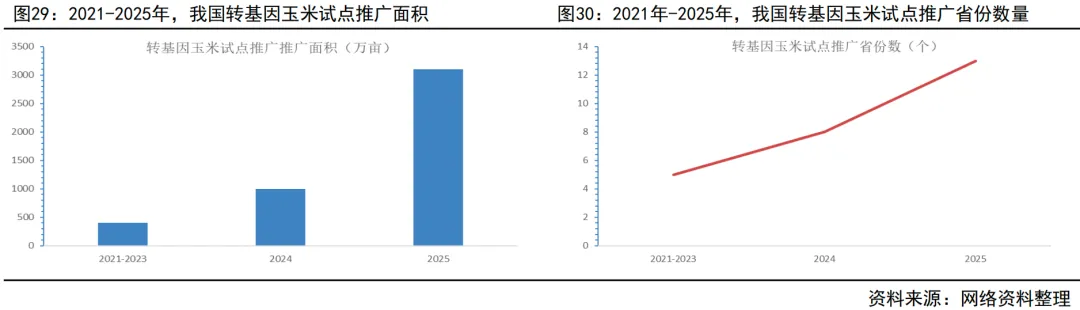 我国转基因玉米、大豆产业化试点自2021年启动以来,推广进程稳步提速:
