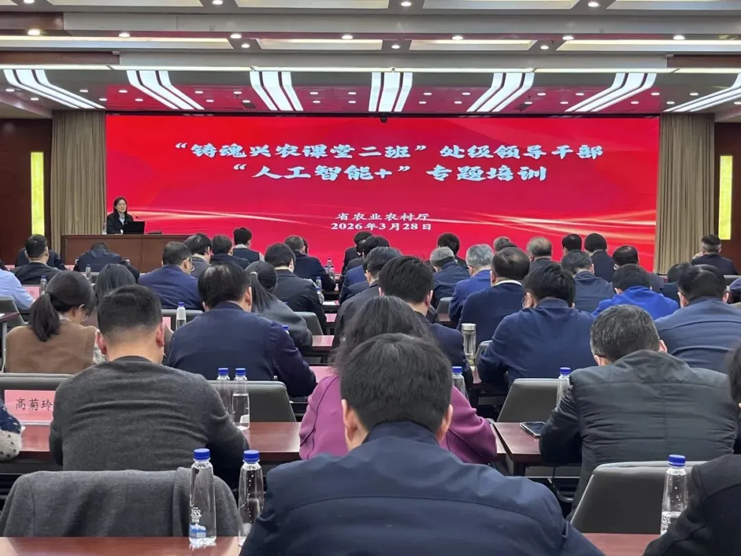 培训围绕“人工智能+农业”主题作专题辅导,相关处室(单位)聚焦人工智能在粮食生产、畜禽水产养殖、海洋渔船安全、农机装备等领域的实践应用作交流。曹丽虹副厅长出席培训并讲话,厅党组成员孙卫永,厅二级巡视员钱宏光出席培训。厅总师专员,机关正副处职干部和事业单位(含参公)主要负责人,厅“人工智能+农业”工作专班,部分“铸魂兴农课堂青苗班”学员参加培训。