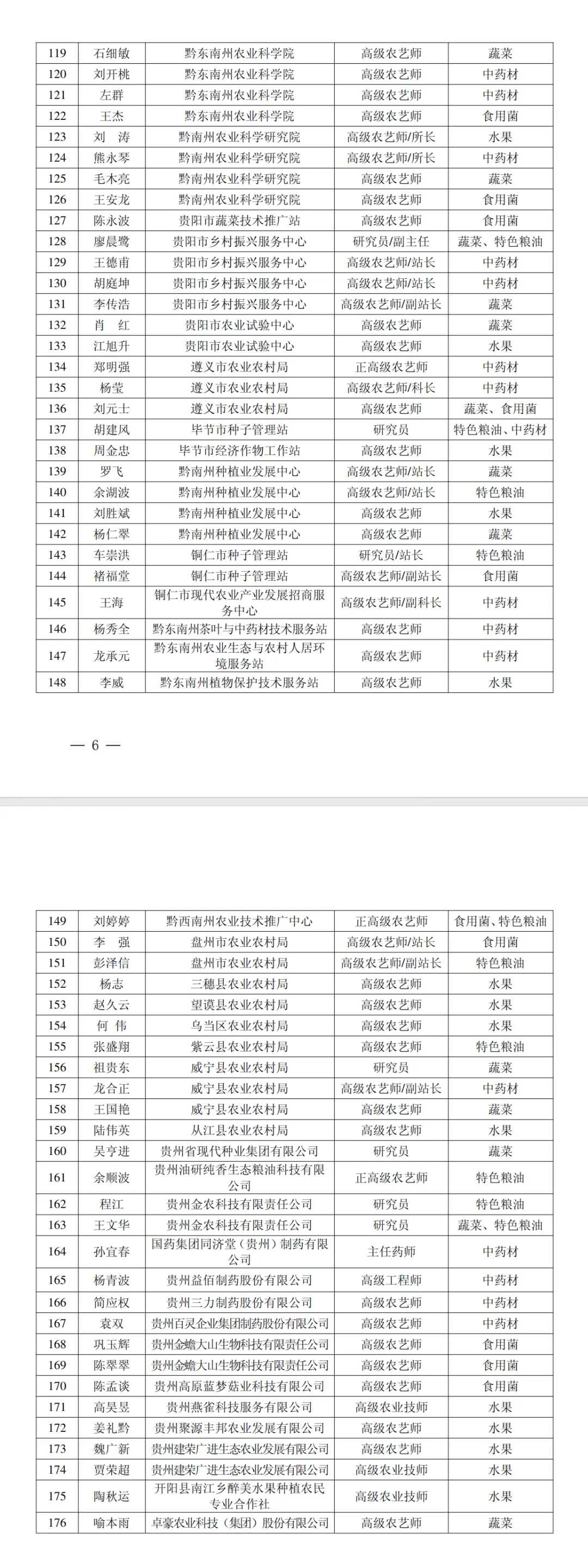 为切实做好非主要农作物品种认定工作,按照《中华人民共和国种子法》《贵州省农作物种子条例》《贵州省非主要农作物品种认定办法(试行)》有关规定,结合我省实际,经个人申请、单位推荐、综合评议、公示等环节,经研究,决定成立贵州省非主要农作物品种认定专家库。专家库由我省蔬菜、食用菌、水果、中药材、特色粮油5个领域176名专家组成,实行动态管理。现将成员名单予以印发。