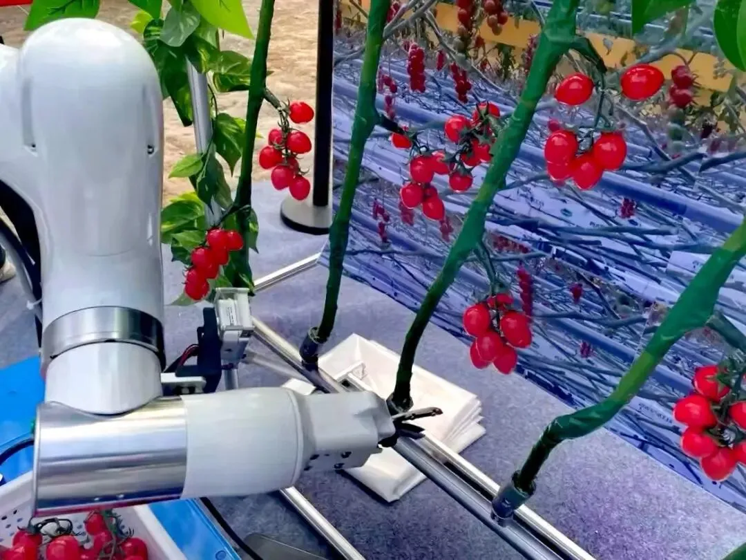 另一款番茄采摘机器人同样引人注目。相关负责人介绍,该机器人可在10秒内完成一串小番茄的采摘,大幅提升生产效率,节省人力。目前团队仍在持续优化其在强光环境下识别果实的能力,以提高采摘的准确性和稳定性。田间巡检机器人则通过拍照和红外、热光谱成像分析,实时监测作物生长状态,为育种和种质资源管理提供数据支持。