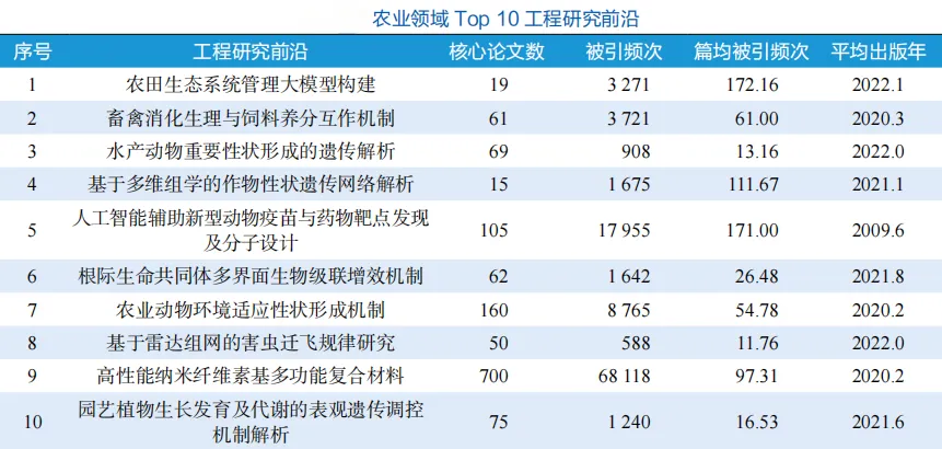 《全球工程前沿2025》中,农业领域10大研究前沿与11大开发前沿出炉。下面是详细名单: