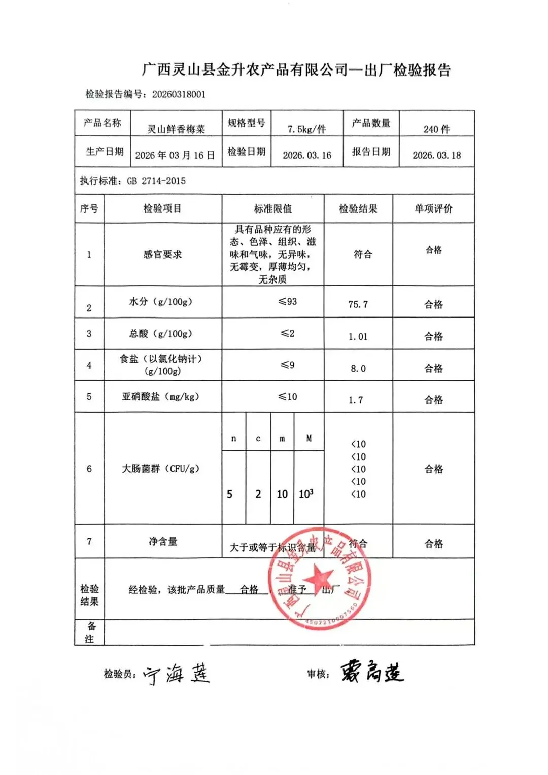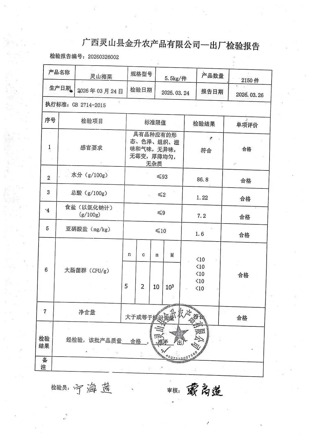 金浦供应链&禾美农业-03月30日蛋类、酱腌菜、肉类、蔬菜、水豆腐、鲜湿淀粉条检测 报告