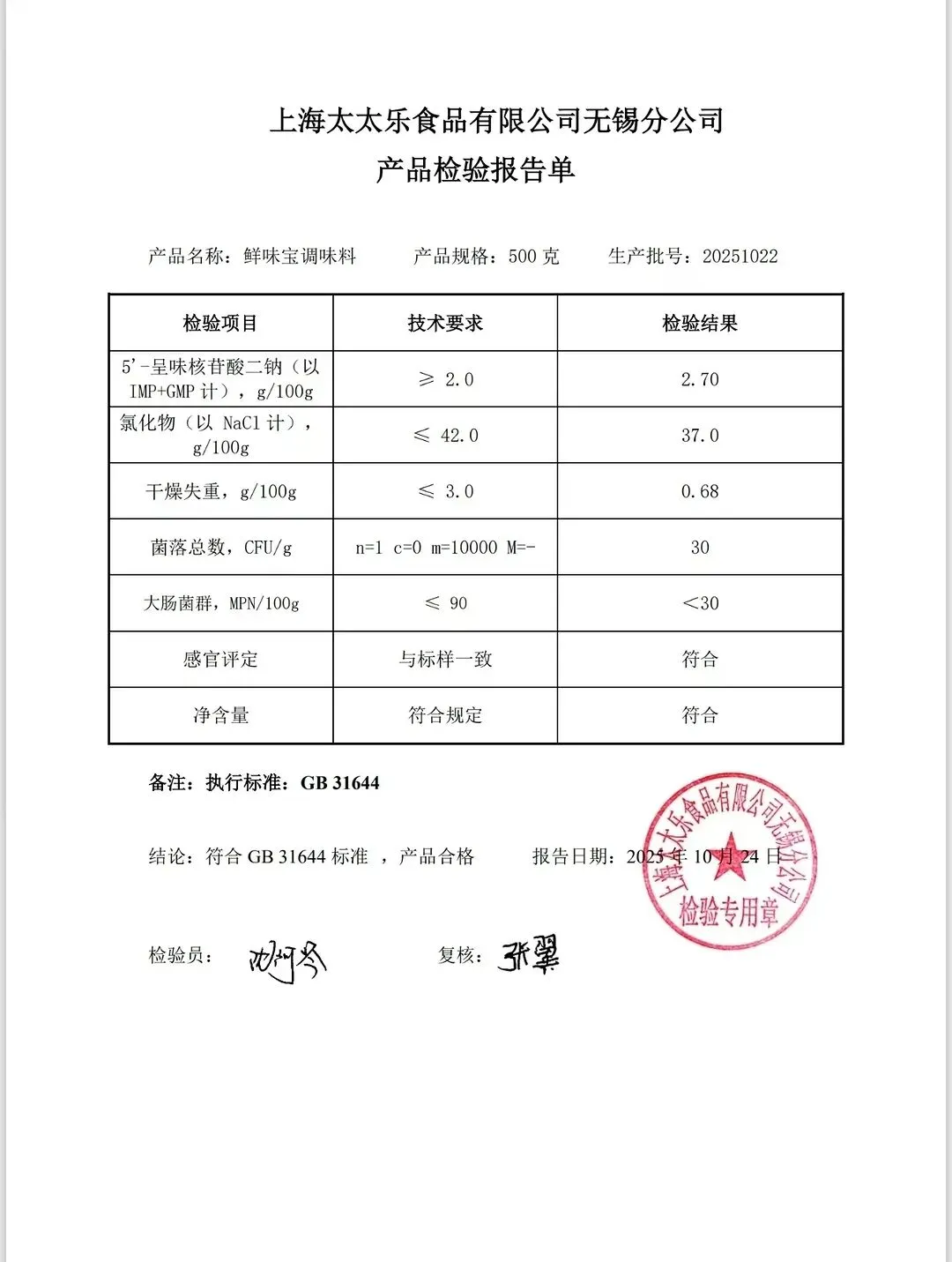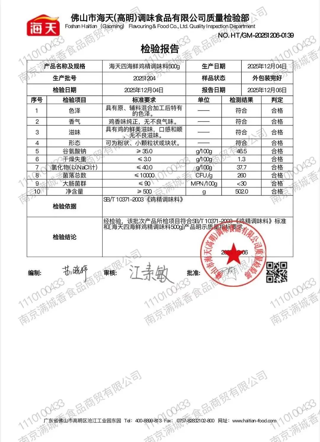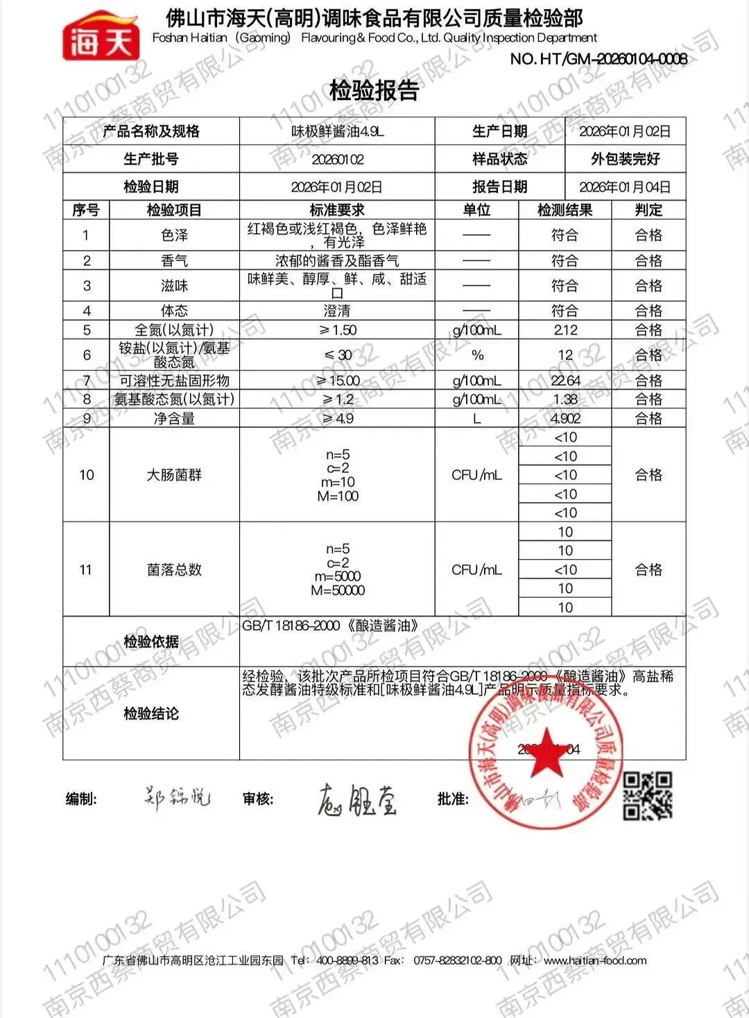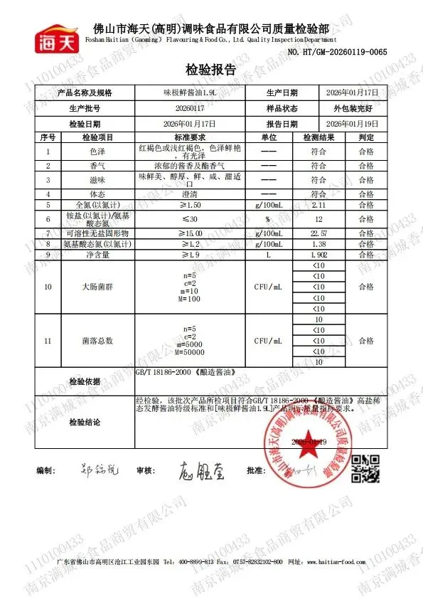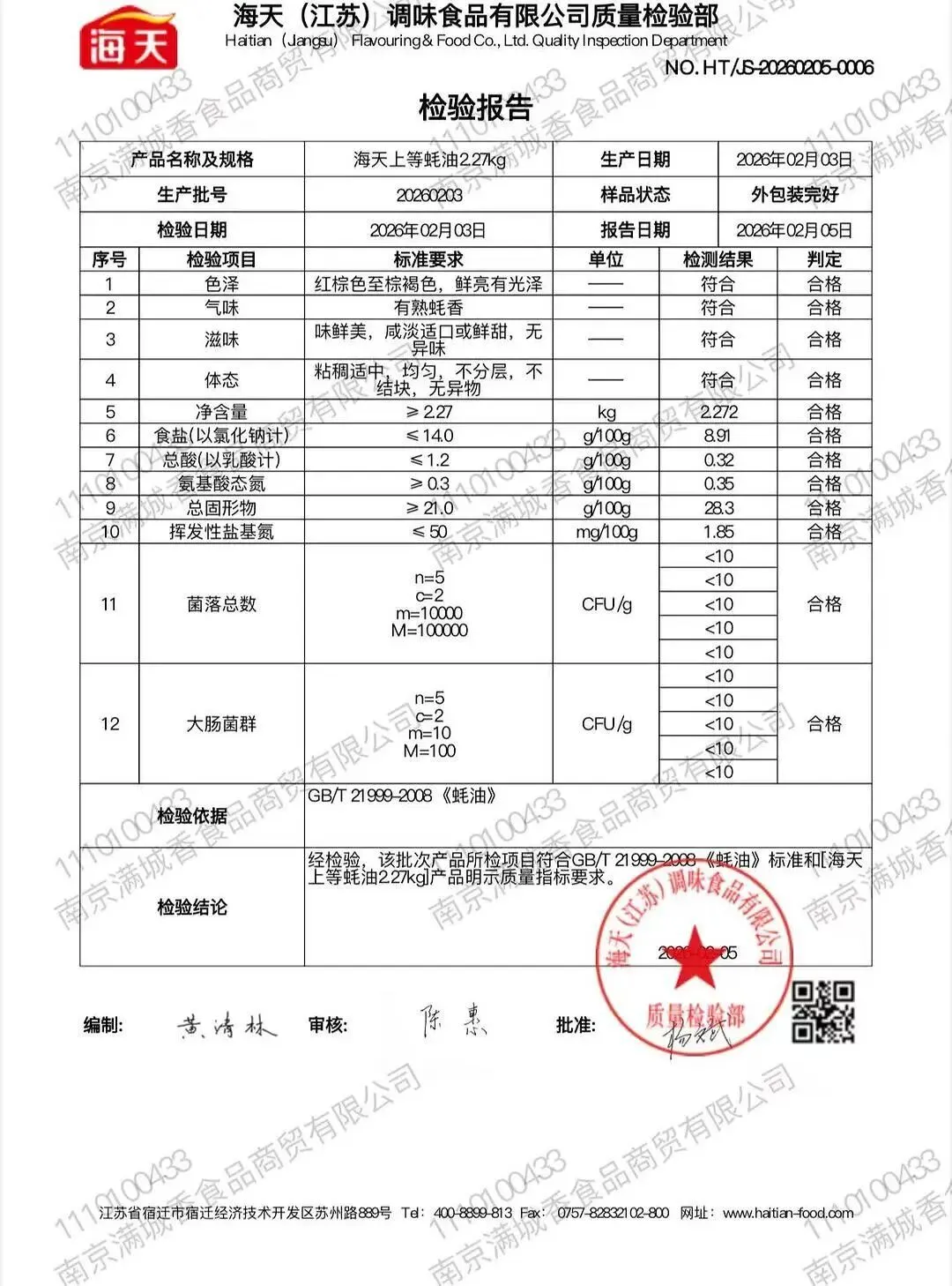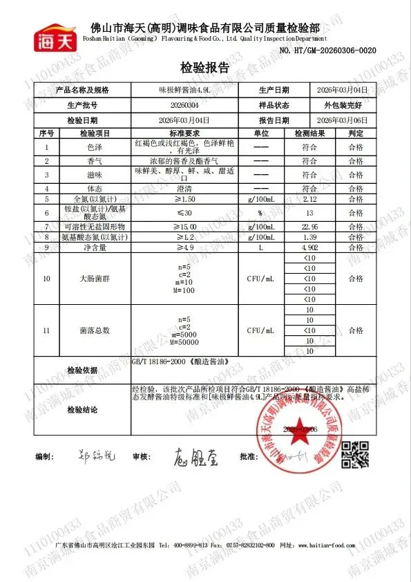 调味品(海天、酱料、杂货、酒类、雀巢奶粉)检测报告