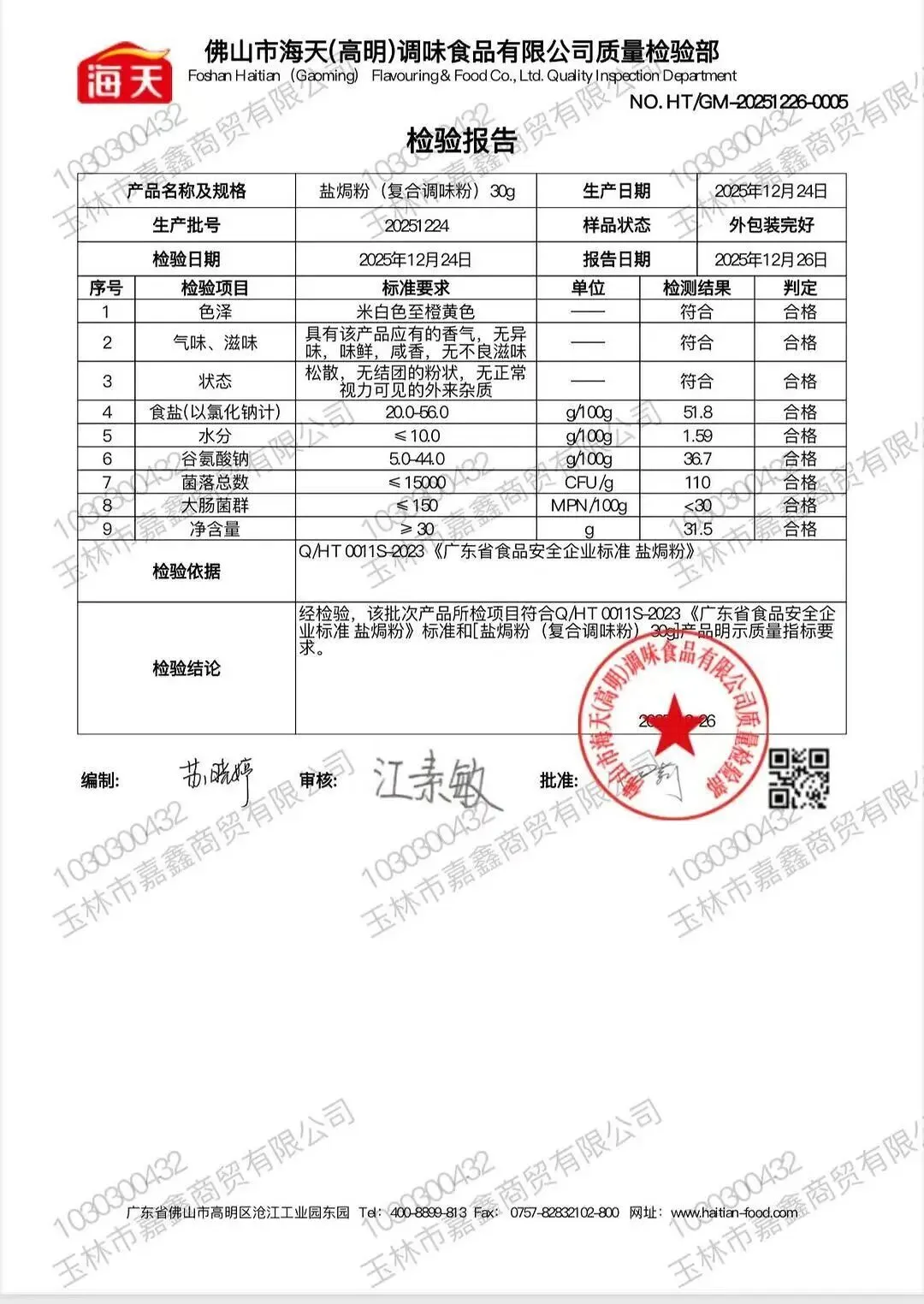 金浦供应链&禾美农业-03月30日调味品(海天、酱料、杂货、酒类、雀巢奶粉)检测报 告