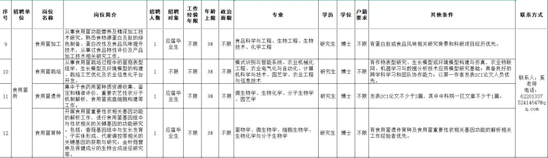 上海市农业科学院食用菌研究所招聘博士4名,涉及食用菌加工、栽培、遗传、育种岗位。
