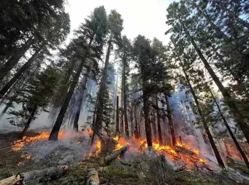 山上留下来的,是另一个问题。加州盛夏前的山林植被,历来靠残存的高山融水和初夏云系慢慢润着,四月末到五月中旬那段时间,坡地植被得把里面的含水量补到某个安全值,才算能承载进干热夏季。2026年三月,所需要的缓冲时间,被往前硬压了几周。坡地植被过早接触干热山风,把里面的水分一点点还给了空气。针叶林的叶色由深绿转向灰绿,再转向枯黄。不是老化,是漫山遍野的燃料库在往自己里头装货。