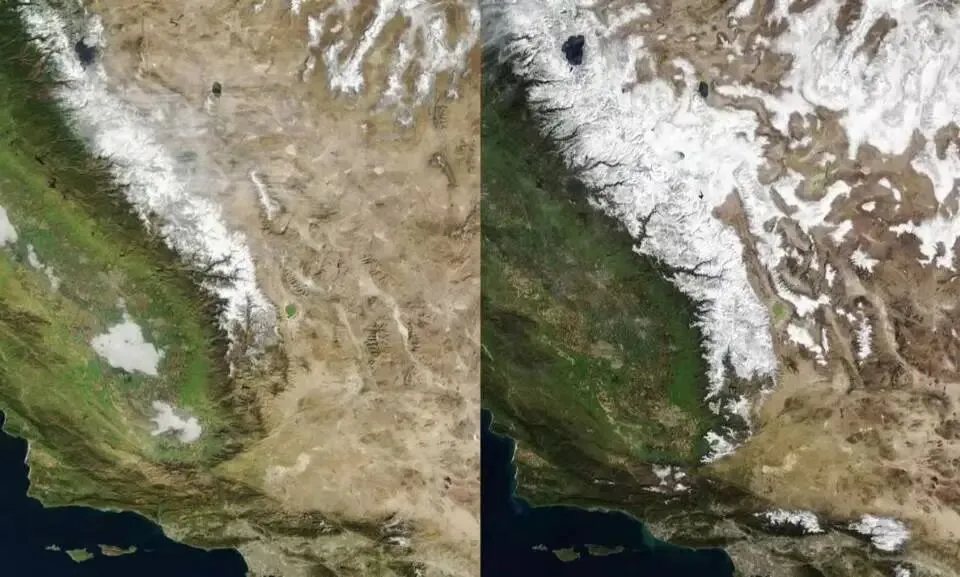 地表的数字看起来一片乐观。暖冬的几场强降水把人造水库堆得快满,安全区水位指针稳定,新闻简报里口径一致,大意是乐观的。但高地的数字已经是另一套了:内华达山脉的积雪,在一个异常温热的三月里,以每天1%左右的速度从山体上消失。到三月中旬,全州积雪量跌到了历史同期的38%。
