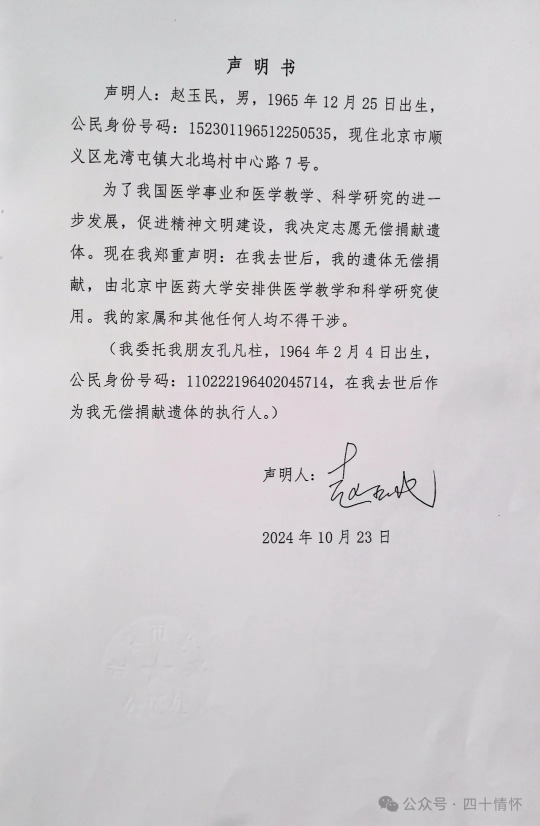 我的遗体捐赠公证书