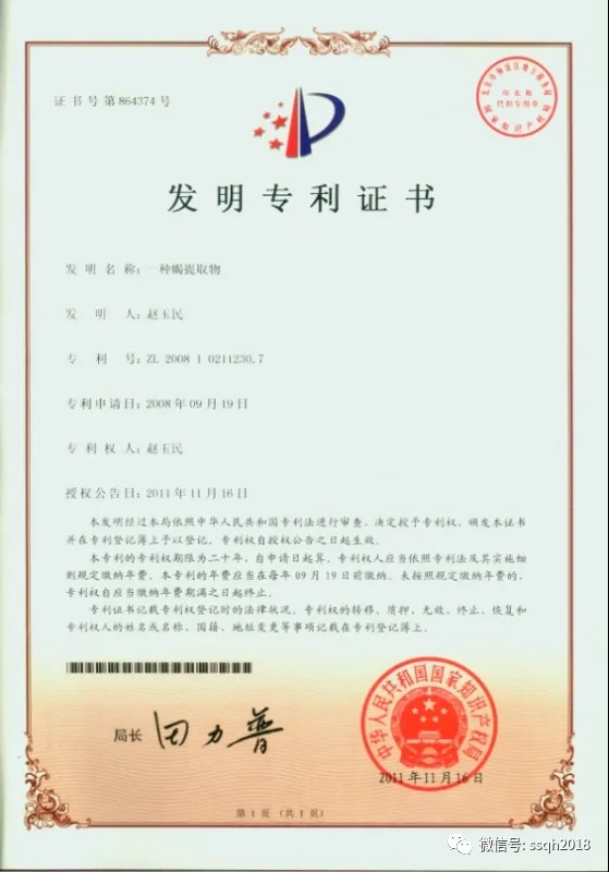 2、蝎原肽有发明专利证书(专利号:200810211230.7),这个不会蒙人吧!