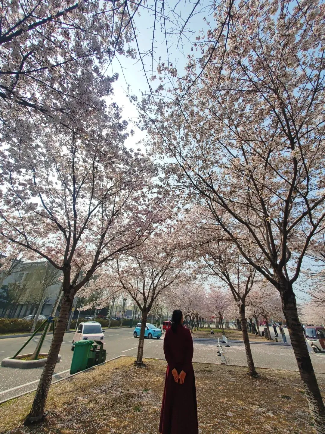 漫步园中,最动人的还是那片灿烂的樱花,层层叠叠的花瓣缀满枝头,如云似霞。
