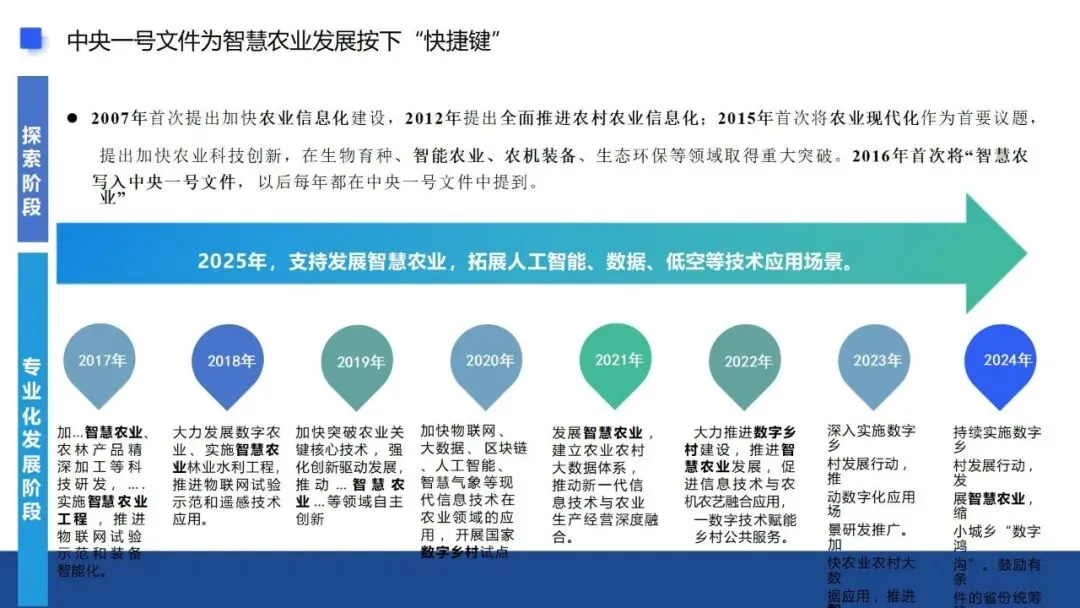 在农业现代化加速推进的今天,智慧农场作为智慧农业的核心载体,正依托政策红利与技术革新,打破传统农业的发展瓶颈,推动农业生产从“经验型”向“精准型”、从“分散型”向“集约型”转型。它不仅是农业新质生产力的重要体现,更是国家保障粮食安全、推进乡村振兴的关键抓手,其发展始终与国家政策导向同频共振,根植于农业发展的实际需求。