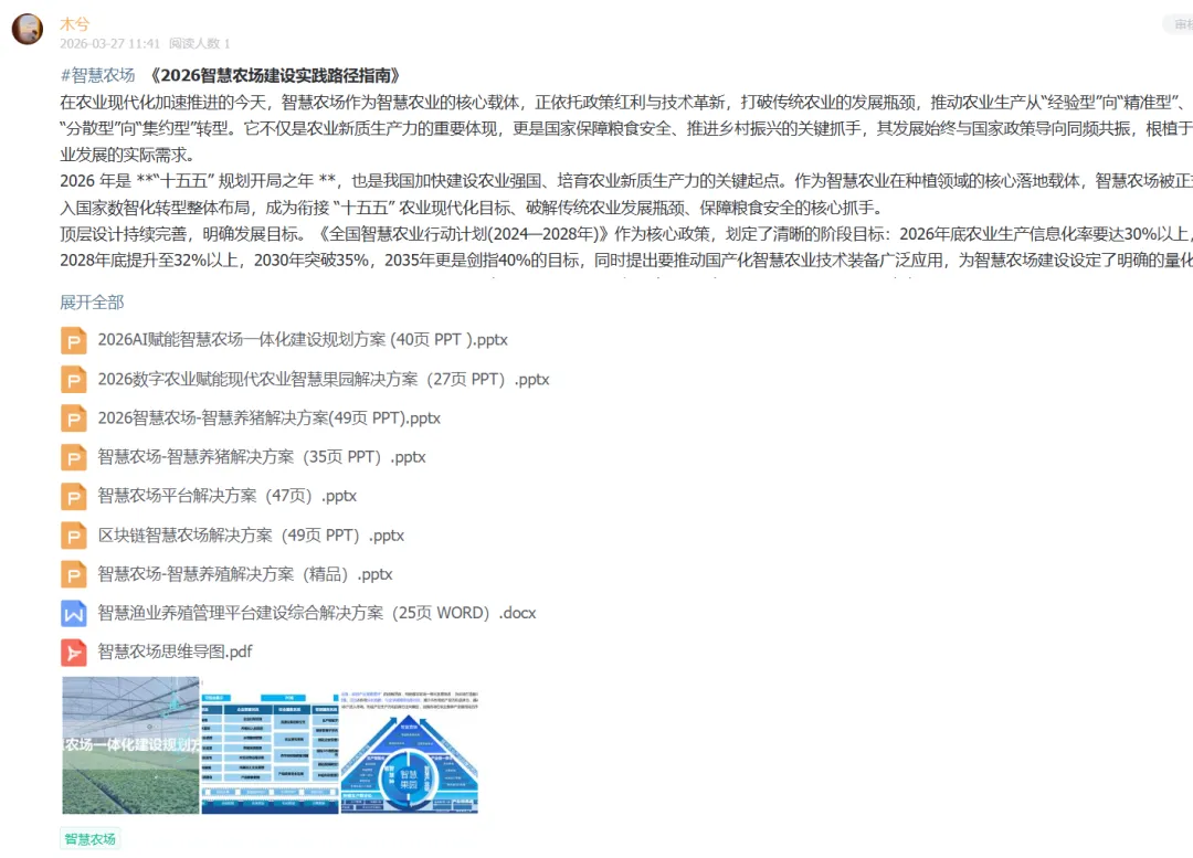 2026 年是 **“十五五” 规划开局之年 **,也是我国加快建设农业强国、培育农业新质生产力的关键起点。作为智慧农业在种植领域的核心落地载体,智慧农场被正式纳入国家数智化转型整体布局,成为衔接 “十五五” 农业现代化目标、破解传统农业发展瓶颈、保障粮食安全的核心抓手。