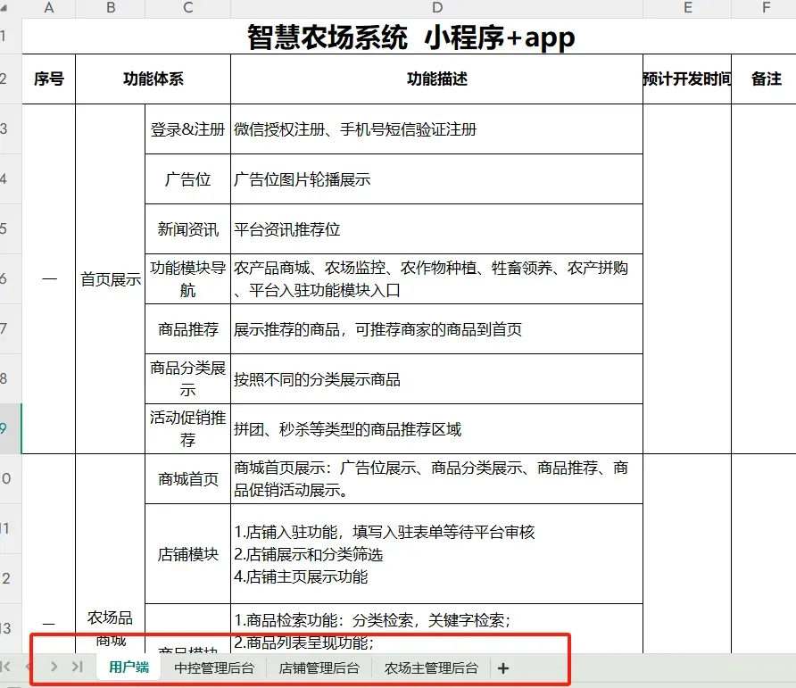 材料4:智慧农场系统功能列表