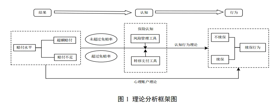 农业保险赔付水平是影响农户续保的关键,同时二者的关系还受到保险认知的调节作用。农业保险的正常情况应是“大灾多赔,小灾少赔,无灾不赔”。然而,农业保险实际经营中存在不符合上述预期的情况。农业保险理赔补贴化、虚假理赔、协议理赔等运行模式导致“无灾也赔、大灾小赔”的现象。这种“广赔付面、低赔付额”的农业保险赔付缺乏精准性,无法有效弥补农户实际灾害损失,未能充分发挥农业保险的损失补偿功能。认知行为理论认为,个体的行为是由人们对于事件的认知所决定的。农户长期以来形成的保险认知会对农业保险赔付水平与农户续保行为之间的关系产生影响。综上,研究基于心理账户理论和认知行为理论,在损失是否超过免赔率的不同情境下分析农业保险赔付水平对农户续保行为的影响及其内在机制。
