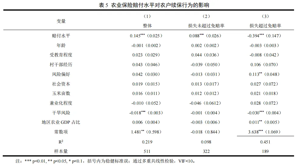 2.1 农业保险赔付水平对农户续保行为的影响