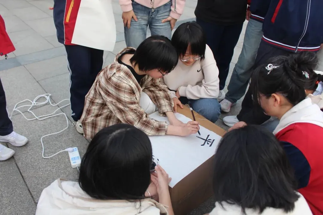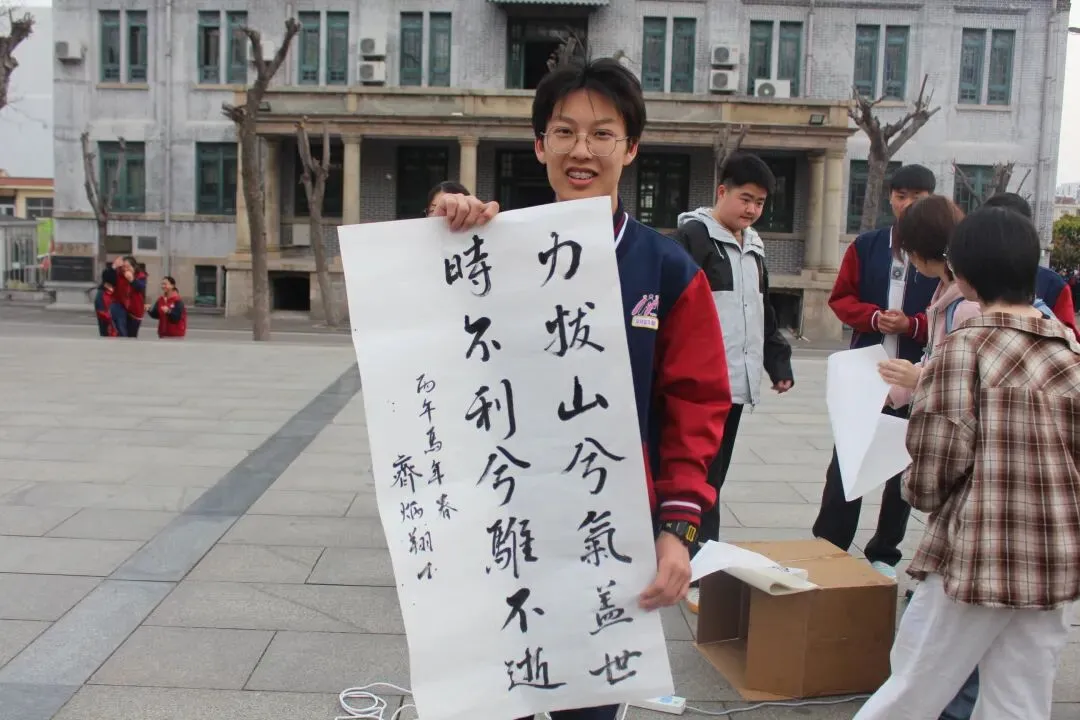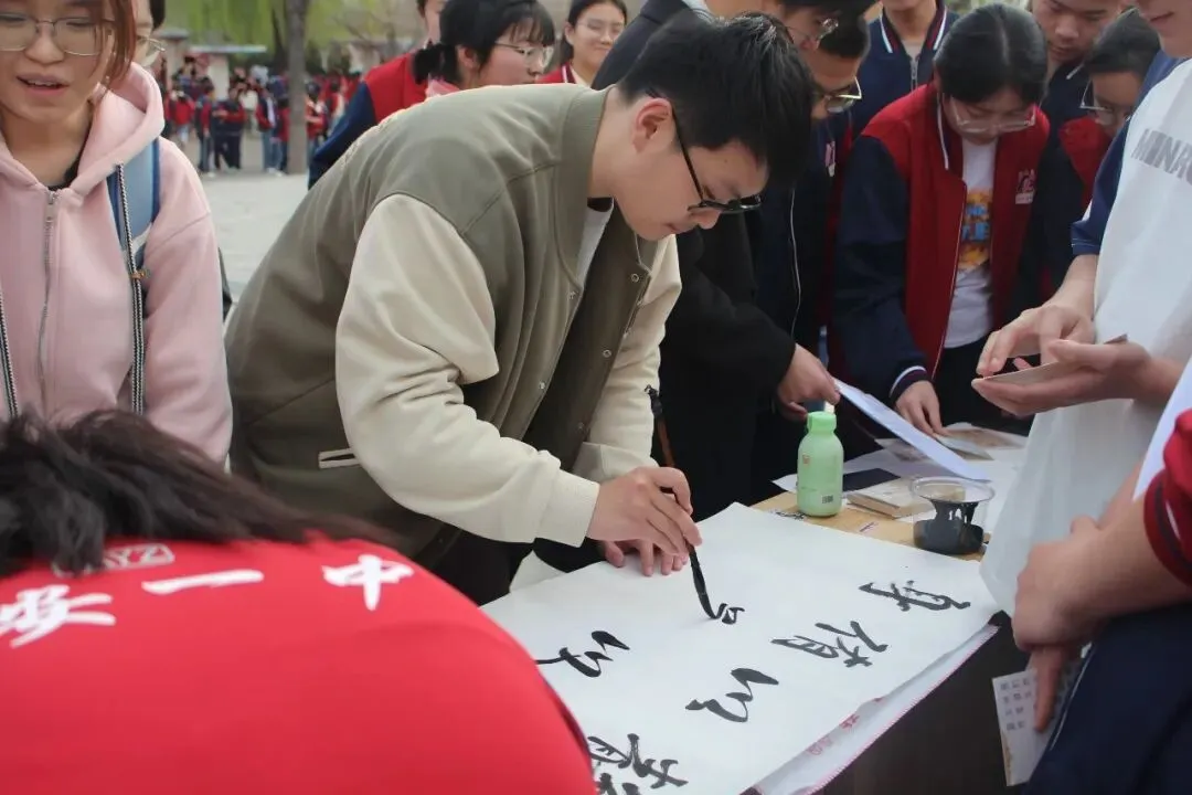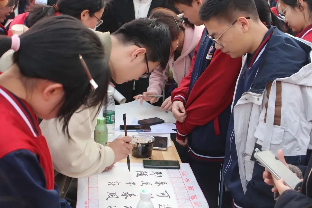 文学社以传统文化为纽带,开展书法雅集趣味活动。现场笔墨纸砚齐备,社团成员挥毫书写高考祝福与青春寄语,赠予参与学生,活动现场互动有礼、氛围热烈,让同学们在游戏中感受书法魅力,厚植文化底蕴。